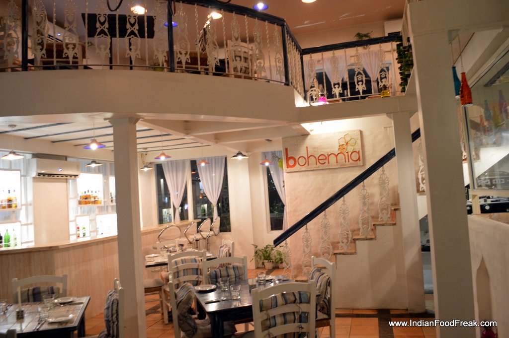 I wasn’t expecting much from a restaurant located in Sapphire mall, Gurgaon. And rightly so, the mall that is located in a narrow road facing Orchid Petals apartment with no inside parking facility (as yet) and in case you plan to take escalators instead of a lift, you will have to roam around the entire floor to catch escalator to the next floor. However Bohemia looked like as Oasis in a dessert. Beautiful outdoor seating, lovely music and semi-finished looks on the inside walls & tables gave it a thoughtful Mediterranean feel, going with the cuisine it offers.