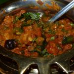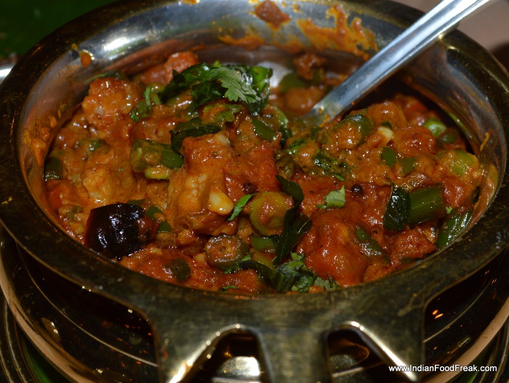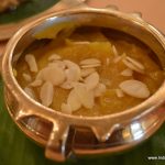 After a brief wait where I sample some pickles from their vast selection, the mains start arriving. Ghongura mamasam (Rs 1100) from coastal Andhra is nice, except that it is not fiery at all, unlike most dishes from coastal Andhra. Raal poruma kolli (Rs 1300) is a prawn dish from the Mudaliar community. It is cooked with vadakam, a mixture of onions, garlic and some spices, and fresh drumstick leaves. It is a fine tasting ‘peasant’ dish; truly what I have come to expect from Dakshin. Another dish that delights is pachakari varattiyathe (Rs 700), a hot and tangy Moplah vegetarian curry. The accompanying appam (Rs 175) and veechu parotta (Rs 250) are impeccable.