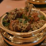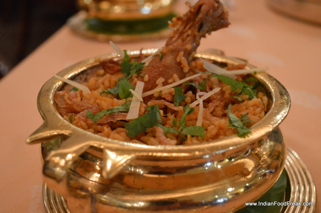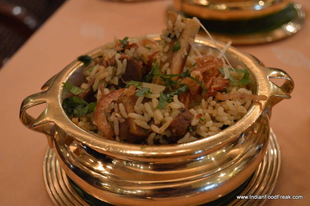 Moplah refers to the Malayalam speaking Muslim community in Kerala with Arab roots. The Moplah erachi biryani (Rs 950) is said to have been brought from Samarkhand by the traders and adapted to the local tastes. It is known for its use of coconut and for being much lighter, with a punch of pepper and the other Kerala spices. It is enjoyable, but somewhat lacking in the intensity of spices. In contrast, the Andhra kodi biryani (Rs 950) takes my breath away, literally. It is most deliciously pronounced in its heat factor, making the dish a passionate adventure.