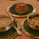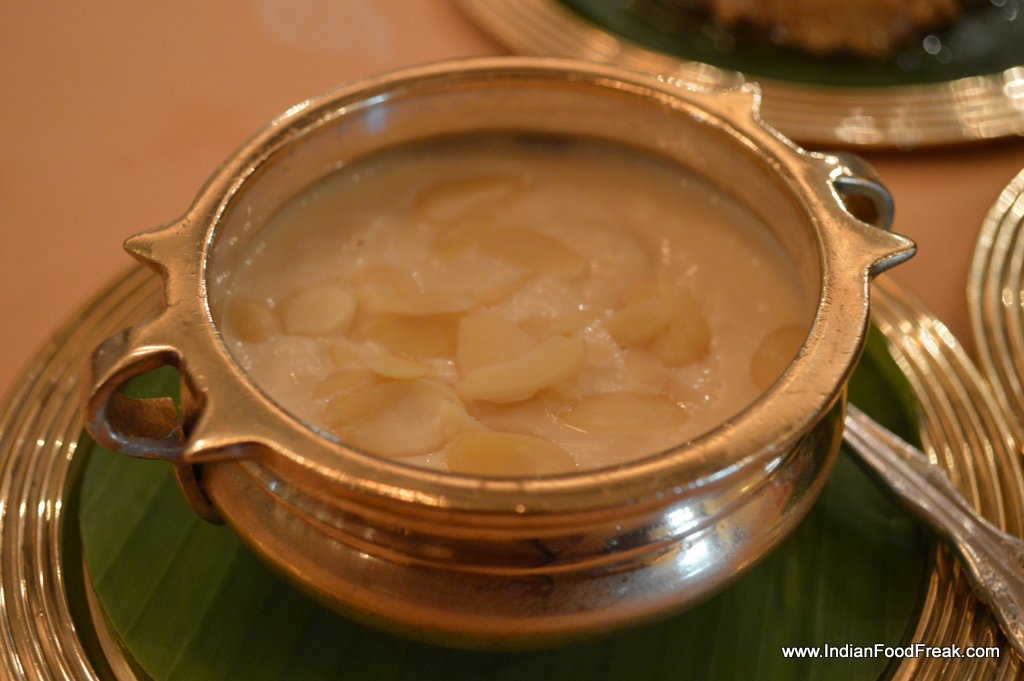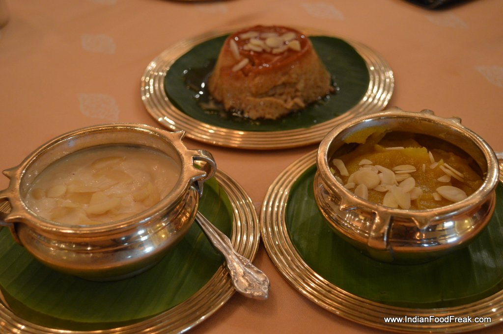 Vathallappam (Rs 400) is the star from the desserts trolley. It is caramel custard made out of coconut milk and jaggery. It is simply awesome. It is lighter than the custard, with smoky undertones of the jaggery and the coconut milk lifting the taste to the stratosphere. The Badam halwa (Rs 400) is delicious too, but far too heavy for me to attempt a second spoonful. Filter coffee (Rs 200) in the end is perfect enough to transport me to Chennai.
