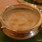 The afternoon starts with the much expected and appreciated papad basket with four different chutneys, and chilled refreshing fresh coconut water (Rs 225). Soon we get the starters. Kuzhi paniyaram (Rs 175), the small dumplings that are made in Iyer kitchens are as good as they can get. The meen veruval (Rs 1000) from Tamilnadu disappoints though. While the seasoning is bang on, the choice of fish in deference to Delhi’s tastebuds is sole, which lacks the depth of the texture that is so needed as a counterpoint to the lovely marination of the fish. Also the fish is not crisp as meen veruval should be.