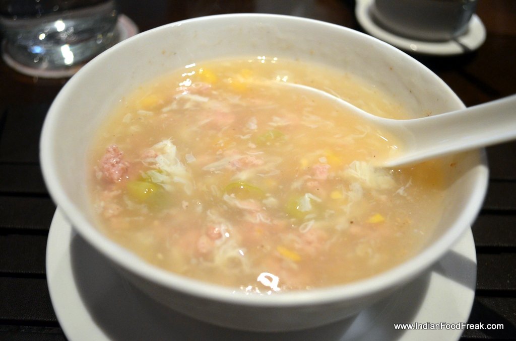 hinese artifacts adorn the walls and ceiling. There are about 30 covers (I assume), with plenty of space to move around. The buffet was neatly arranged on to one side, with the appetizers and soups served on the table. The menu of the day (picture) had a good number of options. The Chicken Sweet Corn Soup was better than the vegetarian Eight Treasure Soup, though both had an overdose of corn flour. I liked the Chicken Sui Mai and Chicken Bowl Hunan Dry in the appetizers. The Prawns Black Pepper Sauce and Fish in Hubei Sauce were the stars of the non-veg main course, and I had at least two helpings of each. The Pan-Fried Greens (Pok Choy, Babycorn, Zucchini, Garlic, Spinach in a mild, thick sauce) in the vegetarian main course was nice and easy on the palate. As is usual with buffets, the food tends to lose its flavors and consistency of textures by being kept on the burners for long periods, the noodles and rice were dry, and thus lacking the flavors.