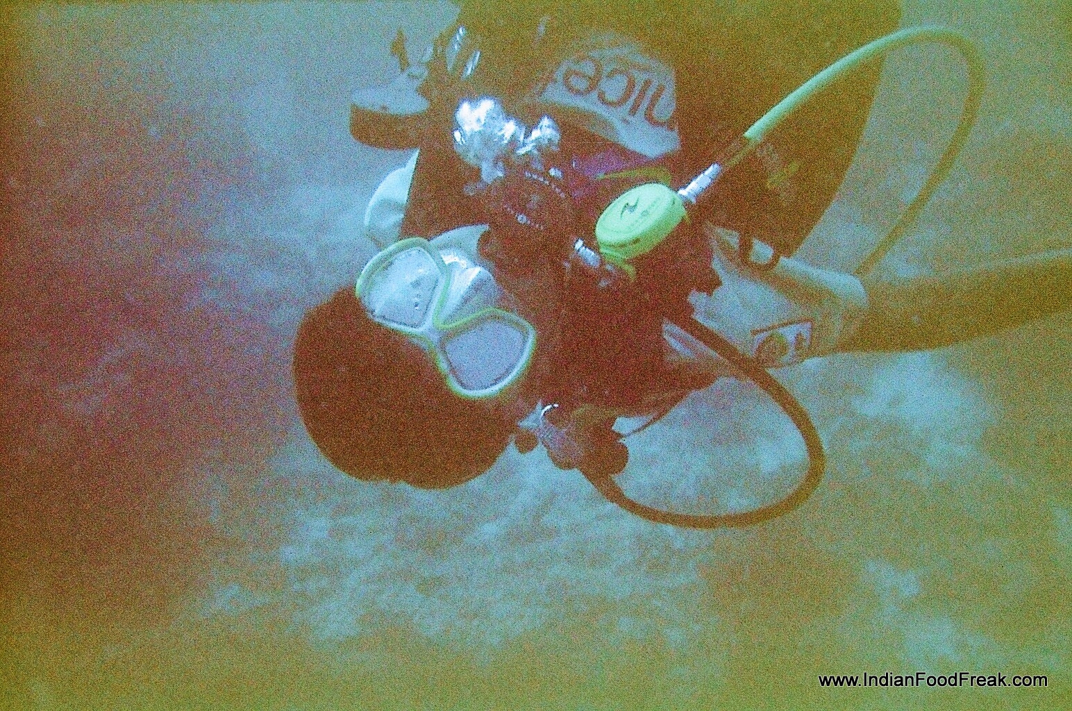 078The Discover Scuba Diving program is tailored to showcase and introduce this risky but amazing water sports for beginners. On day one I was taught scuba-diving basics and fundamentals at an audio-visual presentation and then I was suited up in underwater diving gear and taken to the deep end of the hotel’s swimming pool. Two metres underwater in the pool, I was taken through the entire gamut of scuba diving fundamentals and safety procedures- breathing, equalization, buoyancy, buddy breathing, mask clearance, breathing tube recovery, underwater communication through hand signals etc. Then, in the afternoon, I went for my first undersea scuba dive.