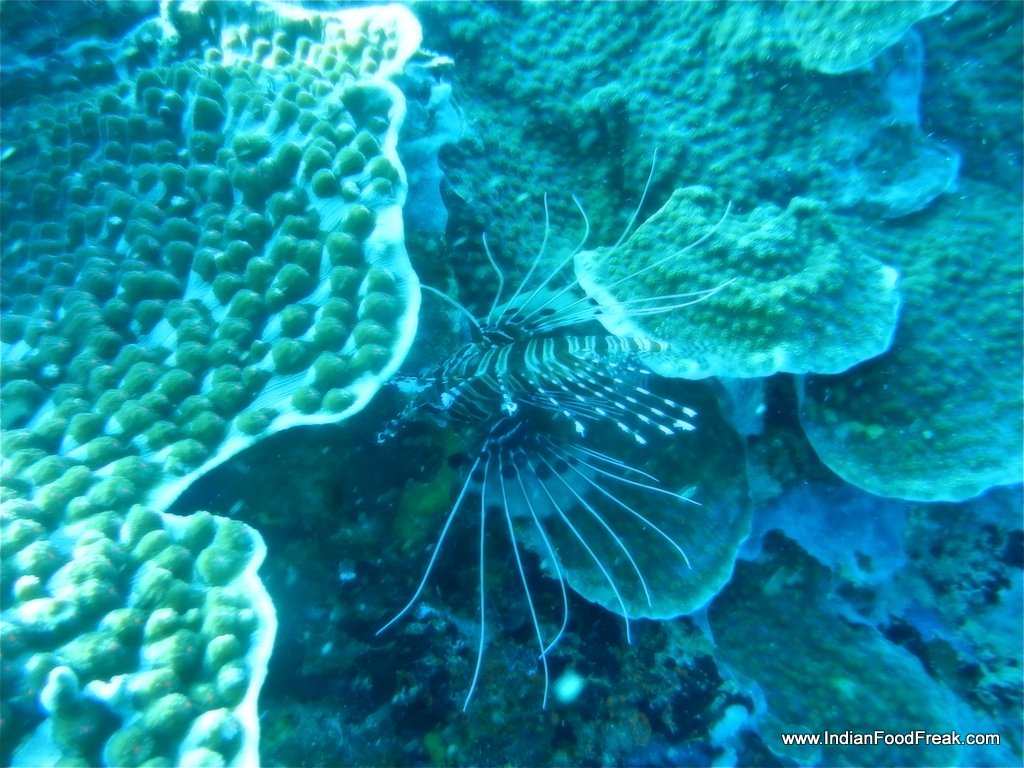 The Discover Scuba Diving program is tailored to showcase and introduce this risky but amazing water sports for beginners. On day one I was taught scuba-diving basics and fundamentals at an audio-visual presentation and then I was suited up in underwater diving gear and taken to the deep end of the hotel’s swimming pool. Two metres underwater in the pool, I was taken through the entire gamut of scuba diving fundamentals and safety procedures- breathing, equalization, buoyancy, buddy breathing, mask clearance, breathing tube recovery, underwater communication through hand signals etc. Then, in the afternoon, I went for my first undersea scuba dive.