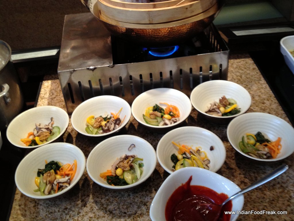 Since I live in Gurgaon, I have been exposed to good Korean food for some years now. I ask Chef Ik Sun Son if he has made any changes to the food to suit the Indian palate. “We have not used beef in any of the dishes, and have chosen more vegetarian centric dishes to suit the Indian palate” is his reply. We take a quick round of the dishes on offer in the buffet and then eagerly proceed to pick up our plates and attack the spread.