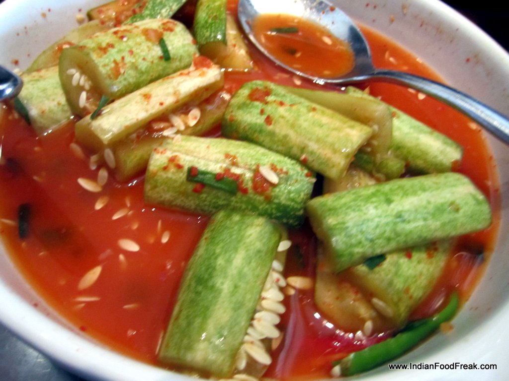 Miyeok kook is a seaweed soup which the chef informs us as being great for lactating mothers. It is a a bit too subtle for our seasoned Indian palate. Kuk soo, the spicy Korean noodle soup was perfect with a wonderful broth.
