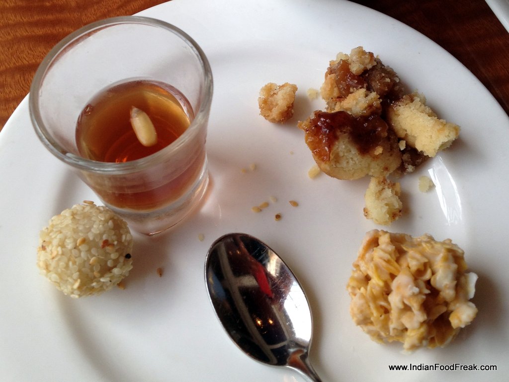 We take our time to move on to the sweets but apart from the cinnamon punch which is refreshing, the sweet bean rice cakes just do not do it for us. The Indian palate would find the sweet rice cakes a bit less sweet and a bit lacking in texture.
