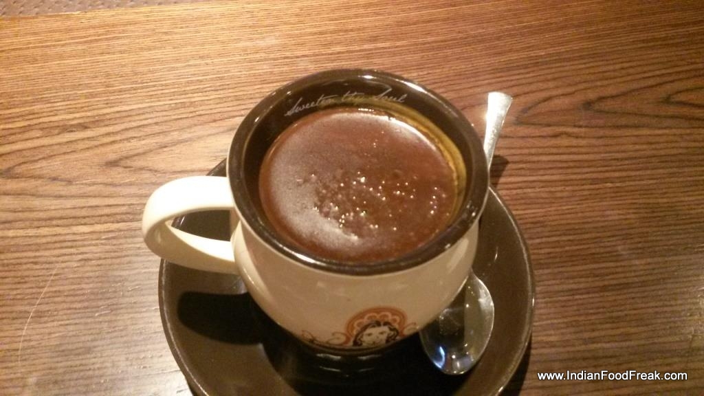 Spanish Mocha denseAfter the sorry affair at Alfredo’s, it wouldn’t be an exaggeration to say that we met of dessert Nirvana. The sight of my wife’s Spanish mocha was enough to make any chocolate lover shake in their boots….thick creamy sticking to the spoon chocolate with an ever so slight hint of coffee, we were in heaven! Two sips down, we realized the reason why the restaurant doesn’t need to carry much food. The cup of mocha was a meal in itself.