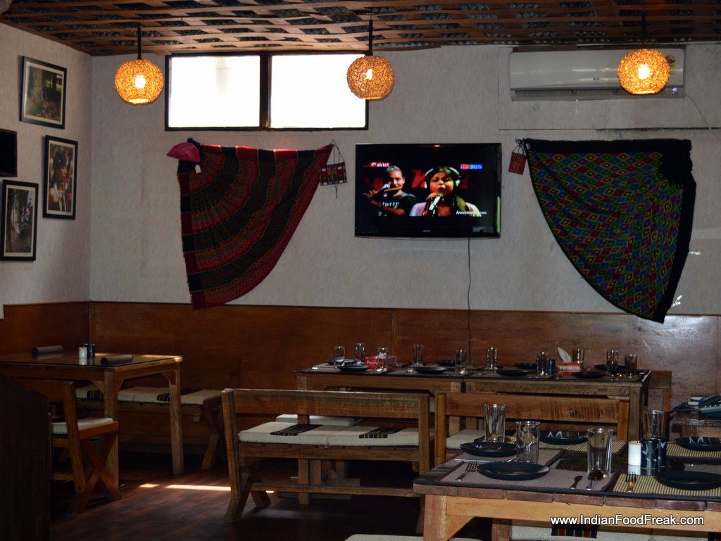 Getting lost in the quirky and messy alleys before you arrive upon your destination is a given to anybody looking for a restaurant in HauzKhas, and Rosang Café and Store is no exception. Climbing up an unpretentious stairwell leads you to a warm and woody premise, festooned with colourful artefacts and handicrafts from the North-eastern states of India. The woody décor and furniture are all hand made by the co-owner Muon and everything about the place, the food, the table service, the people, exudes the warmth and friendliness of the region.