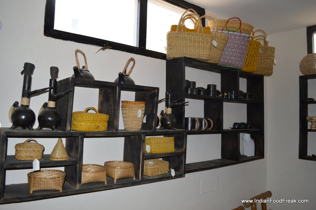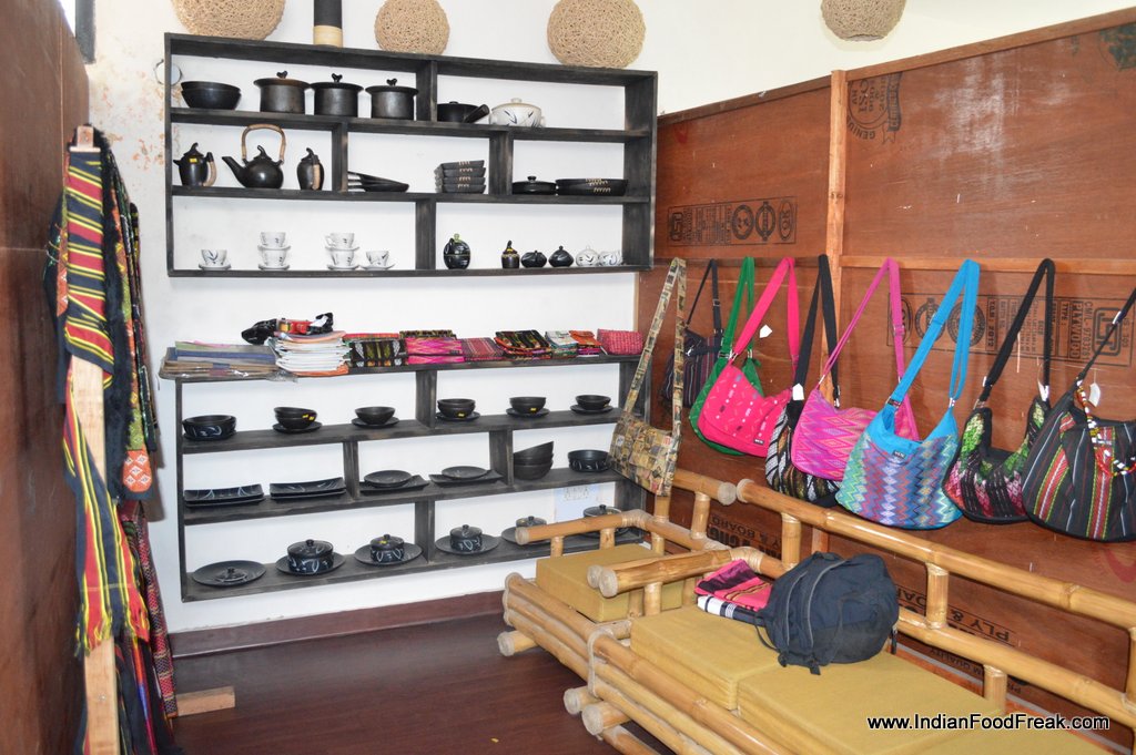 Rice seemed to predominate Rosang’s cuisine with our drink, main course and dessert originating from this beloved grain. Despite the doomsday prediction of diet watchers against rice, I left the place satiated but not stuffed. The restaurant being small, 25 covers, and owner-managed in sourcing ingredients, cooking, taking orders and serving even, ensures that the customer leaves the place with a glow in his heart and a lightness of being, pervading both the tummy and the purse. A store, a floor above, caters to the culturally inclined with a bounty of handicrafts from the region and a Saturday special sale of herbs, condiments and grain shall make sure that the needle of the compass in your home remains pointed to the north-east long after you have left Rosang.