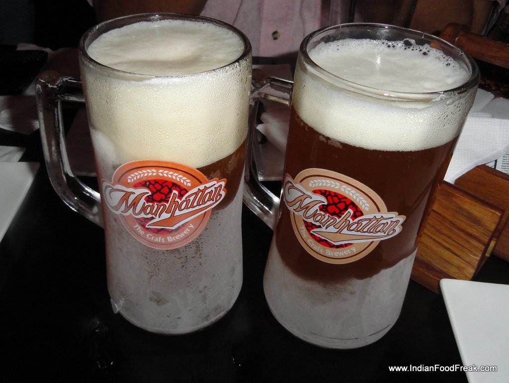 Manhattan being a new micro brewery in town, we decided to go with their in-house beer. On request, a beer taster was kept between three of us. So we had two options, either to rely on someone else opinion or to taste a micro portion of the taster. We decided to go with the safe German wheat beer.