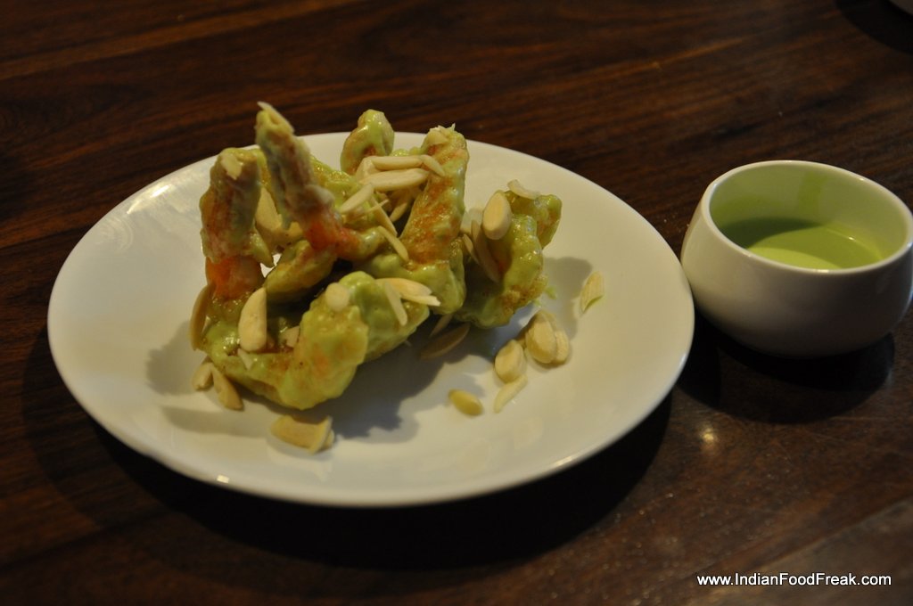 Moving on to the starters, Konjee Crispy Lamb (301) is crisp to the core and my friend finishes it to the last bite. This Konjee is different to congee that is a kind of rice porridge. Konji is more of an Indian innovation like Manchurian and means dry and crispy. If you have liked Wasabi Prawns (331) at Bercos, you will enjoy them here as well. For me the wasabi hit was missing while the slivers of almond provided much needed bite.