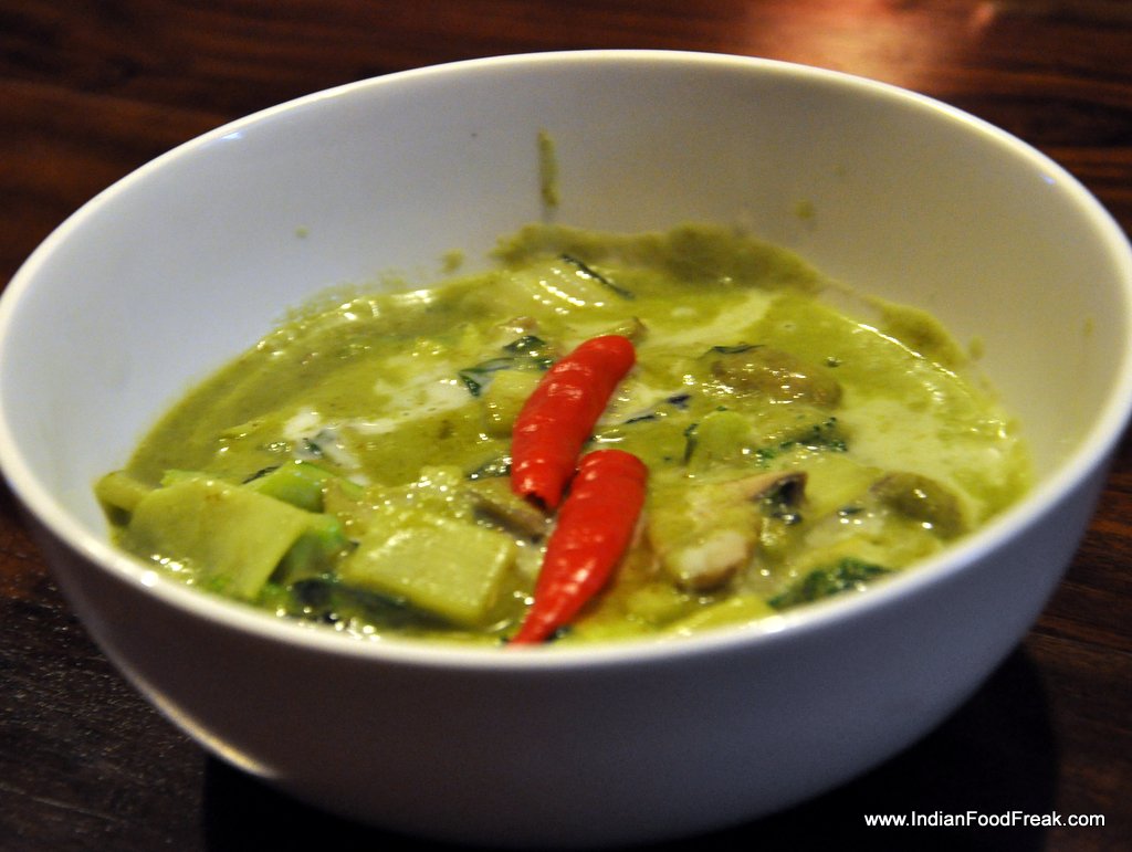 For the main course, Thai red curry and green curry failed to satisfy the foodies in us. Served with a green chilly on top, devoid of Thai aromatic flavors –kaffir lime & lemon grass, and with absence of any veggies, this dish is more like butter chicken in coconut milk.