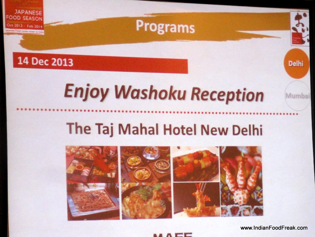 At a press conference, Mr Yasuhisa Kawamura, Minister and Deputy Chief of Mission of the Japanese Embassy addressed the invited members of the press and VIP members of the embassy staff, introducing the festival and its activities. He informed us that the Japanese Ministry of Agriculture, Forestry and Fisheries (MAFF), in cooperation with the Ministry of Foreign Affairs will be introducing “JAPANESE FOOD SEASON ~ Oishii Japan in India”, a new project to promote and showcase Japanese Food in India, by making the cuisine easily accessible to more food lovers than ever before. MAFF will be sponsoring several events in New Delhi and Mumbai from October 2013 to February 2014. These include Cooking Workshops, Restaurant Promotions, Food Retail Promotions, Recipe Contests and Food Festivals, across both cities giving patrons an opportunity to learn about and develop a taste for Japanese cuisine.
