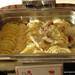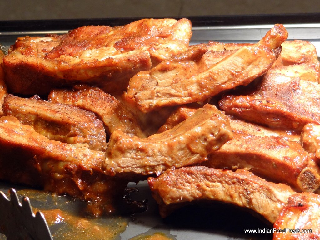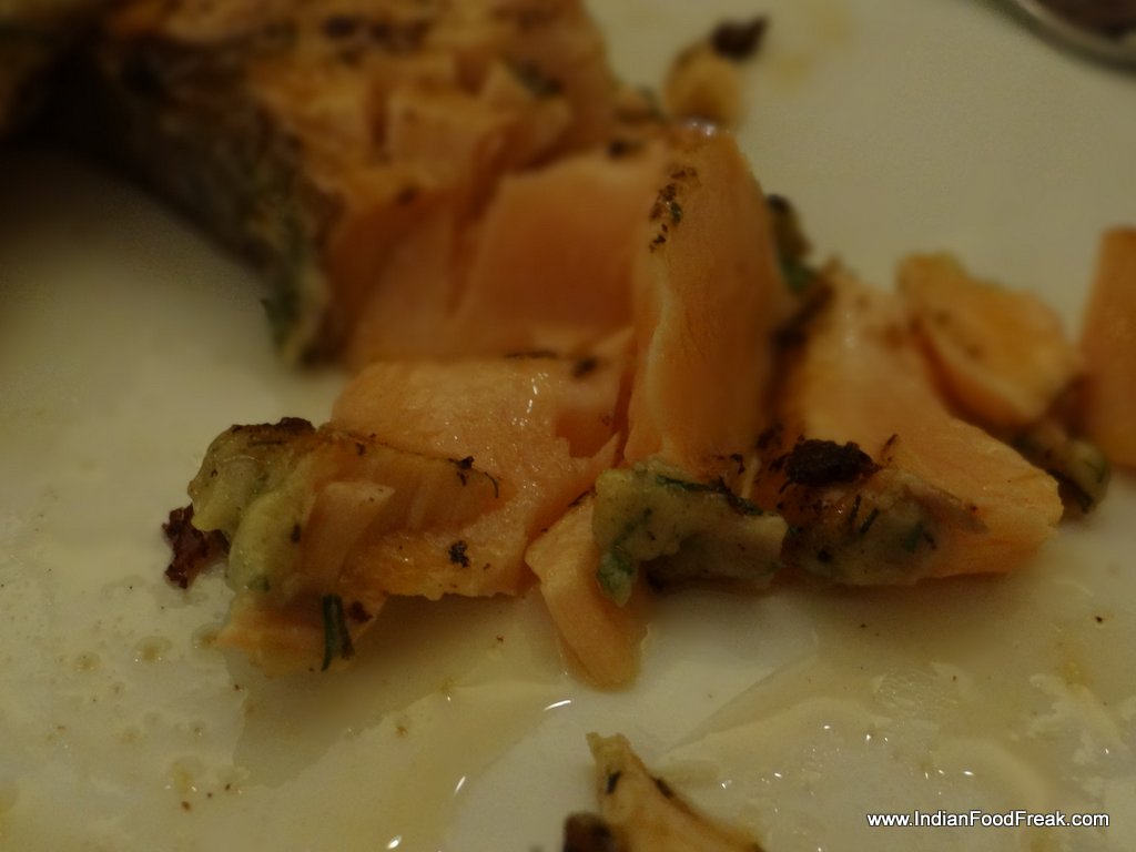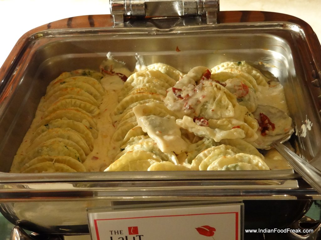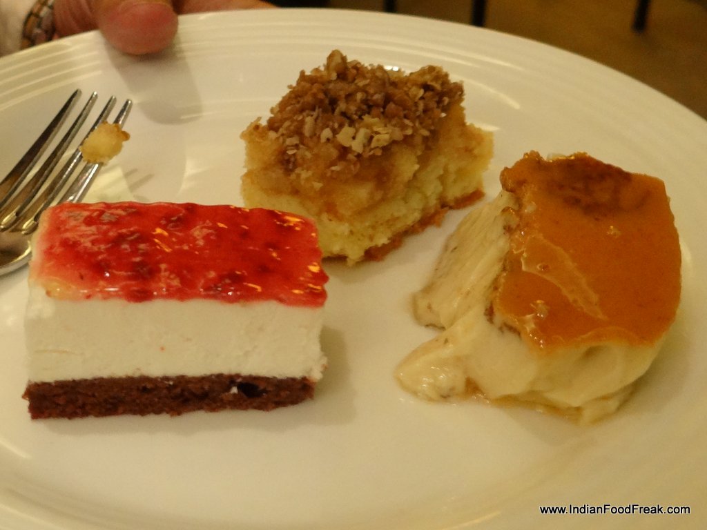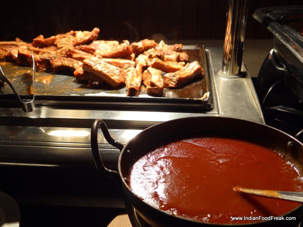 A buffet is never a delight for anyone but if it can still manage to set a benchmark for many of the dishes, it must be exemplary. And this buffet just manages to do so. The queue on the mains is long. Luckily I meet a friend, Sharad, who tells me about the concept – Buffet Shark. As per Urban Dictionary, a buffet shark is a term used when at a buffet, using the tongs in your hand to steal food either a) already on someone else’s plate, or b) out of another person’s tongs. However, Sharad’s definition is different. He says start from the place which has the smallest queue. Without waiting for him to finish I move on to the small queue counter that serves baby bbq pork ribs, ravioli and grilled pork. The bbq pork even though is falling off the bone still retains its bite. Outstanding! However the star dish is the grilled salmon. Perfect crust on outside while flaky and juicy inside. Undoubtedly it is the quality of the fresh fish that is doing the magic.