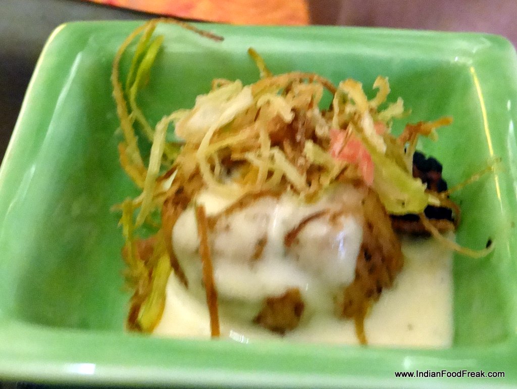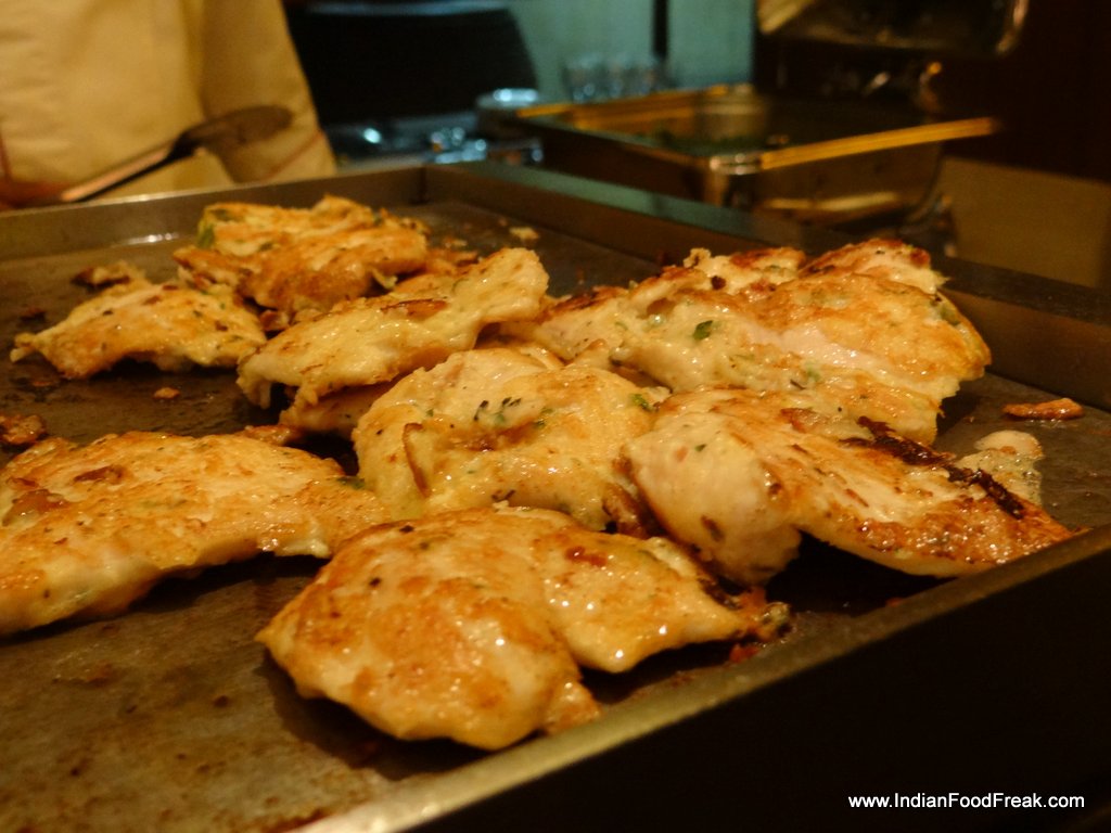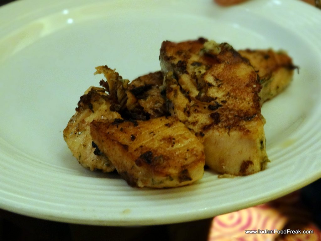 I am still to eat better scallops in India. The salmon ceviche is outstanding and keeps us glued near the table where it is kept. Jerk marinated lamb empanada is equally interesting but calamari is a disappointment with its tough and chewy texture. The pan seared Chilean scallops are kept near the mains but do not miss my sharp eyes. It is again a treat with its soft and melt-in-the-mouth texture with crispy fried and ginger pickle providing a bite.