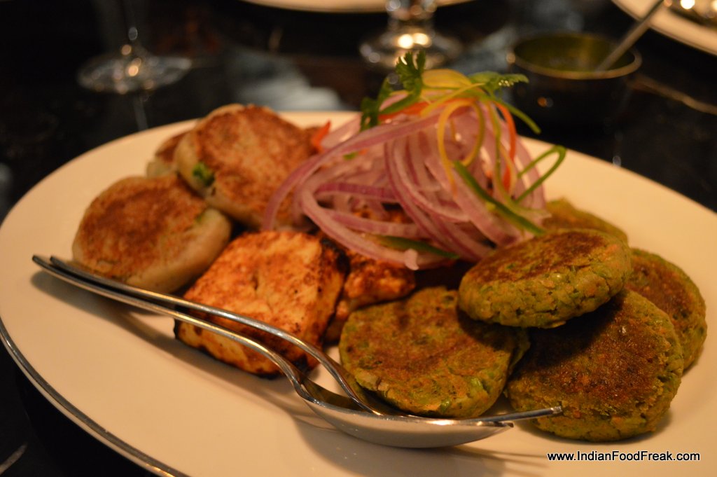 As we enter the plush restaurant, we are met by Sunil Kumar Gangwal, Chef De Cuisine of Hyatt Gurgaon, and consulting Chef Rehmaan, who have both put the Awadhi menu together. They promise to take us through an interesting tasting session. As we are seated we are served with some papads and crudités with three chutneys – curds, garlic and yellow chilly dip, beetroot chutney, and a raw papaya relish.