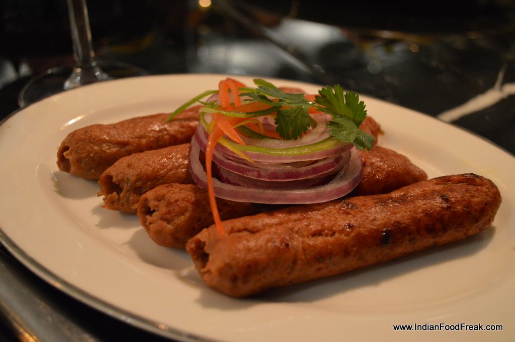 Soon the starters start appearing on the table. The first to appear is a kabab from a hamlet called Kakori on the outskirts of Lucknow. Kakori kabab (Rs 750) which has mutton skewers with mince obtained from no other part but the raan ki machhli (tendon of the leg of mutton), khoya, white pepper and a mix of powdered spices including saffron, rose petals, and cardamom. This kabab is melt-in-the-mouth perfect.