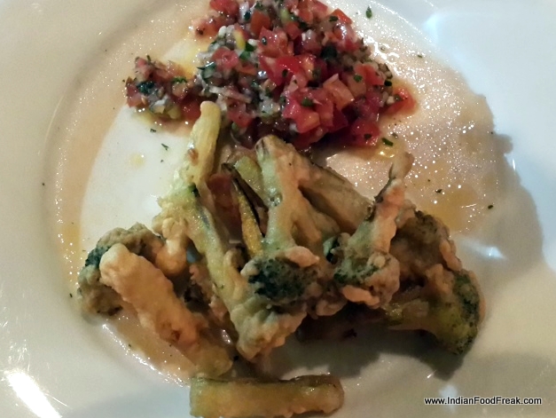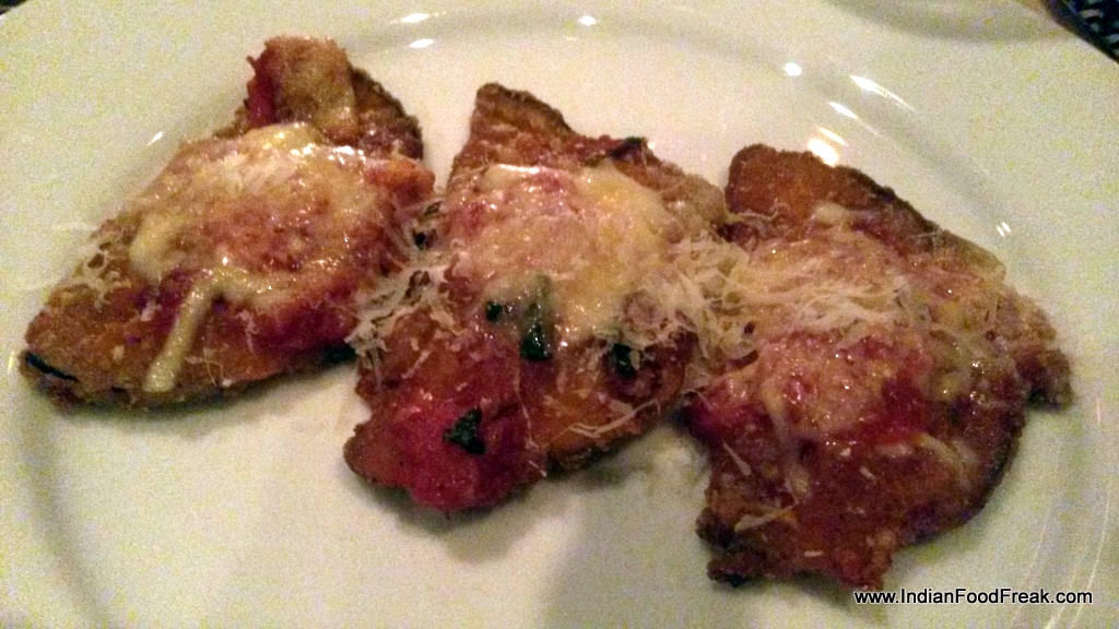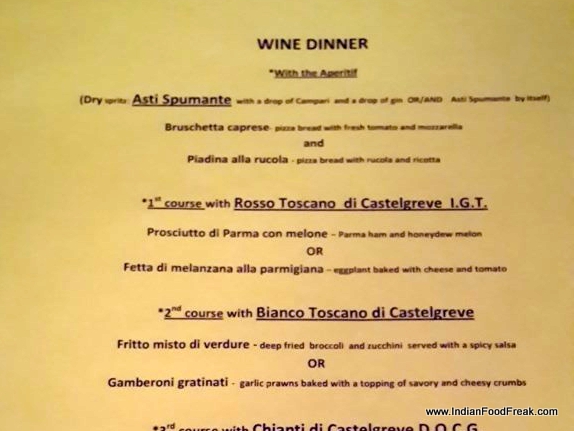 We recently had the opportunity to taste one such wine menu designed by Ixora Wines to showcase their Italian portfolio. The evening started off with an effervescent Asti Spumante paired with a soggy forgettable bruschetta. Thiswas quickly followed up by a RossoToscano di Castelgrave (a mild rose) paired with Parma ham and honeydew melon, a combo which is always a winner. The soft, salty and creamy texture of the parma ham went very well with the juicy sweetness of honeydew and here too it shone beyond belief. Baked eggplant with cheese and tomato works well with a taste of garlic and a dash of extra virgin olive oil.