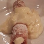 For desserts we tried the coffee pasty roll filled with mascarpone cream and brandy custard. This was surely a piece du resistance of the evening and certainly made us smile at the end of a meal which had few hits and many misses.