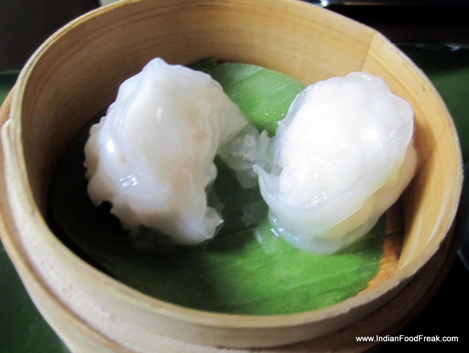 Cantonese style steamed chicken and black mushroom (Rs 225) are made great by the chicken skin left intact on them. Pan fried gyozas (Rs 185) are competent and glutinous rice in lotus leaf (Rs 145) is a good ending to a great yum cha.