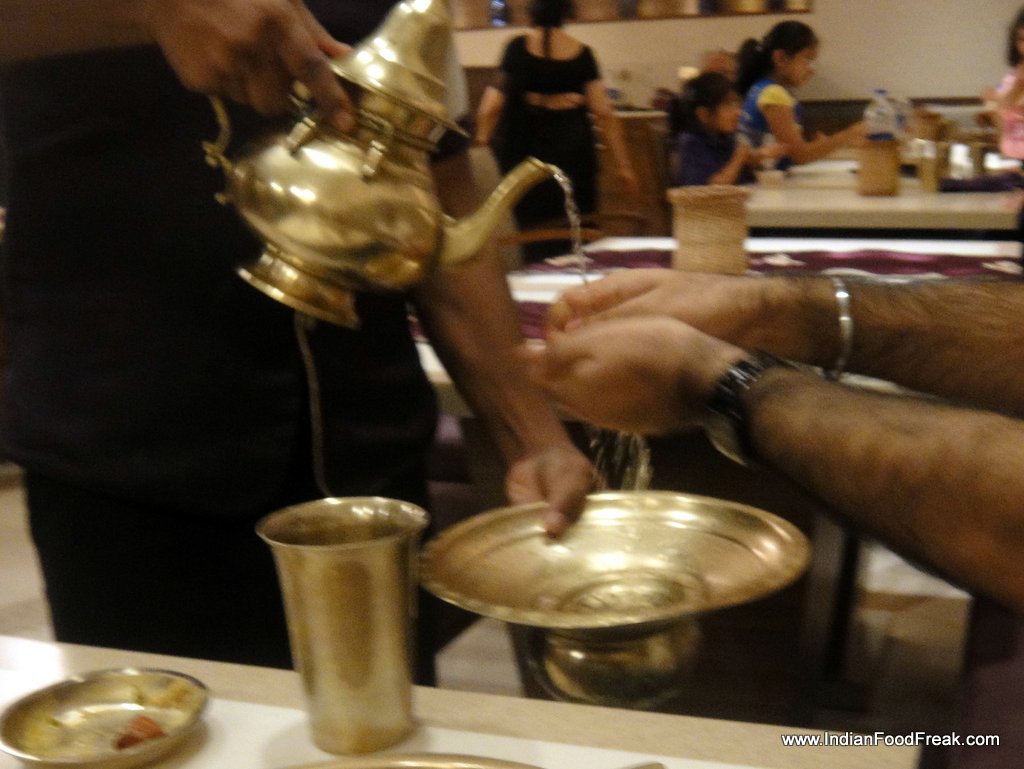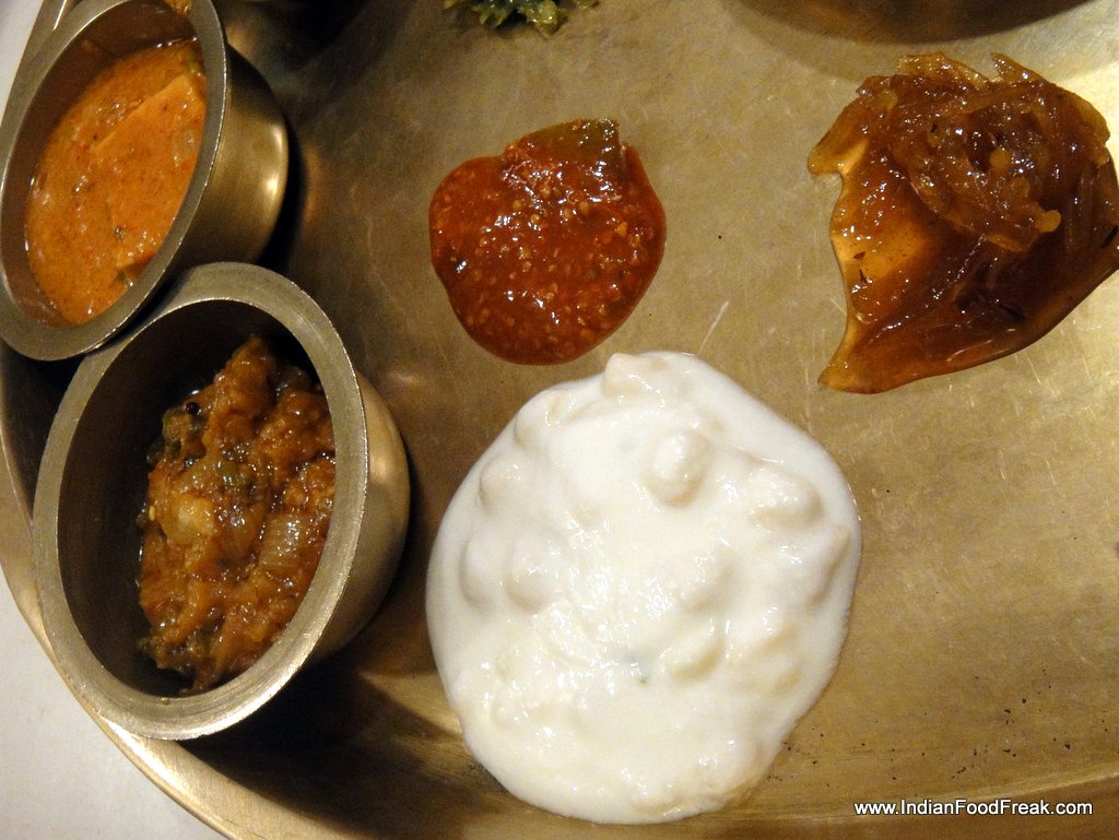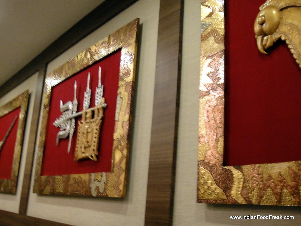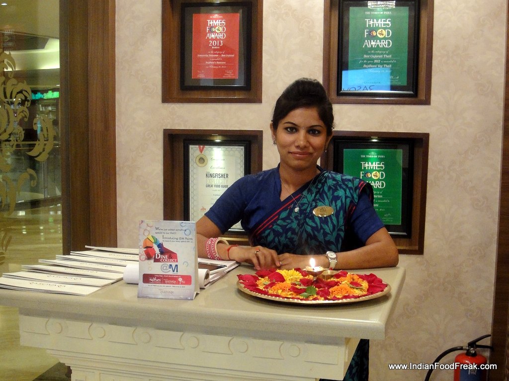 I am not an ardent thali hunter, but I have had quite a few across India – from the formal restaurants in Mumbai to the dusty bylanes of Tumkur. Rajdhani stands tall amongst the above average Thali restaurants, but lacks consistency across various locations. So when I heard about the Rasovara, and the high quality food it is said to dish out, I had to give it a try. Rasovara is is a flagship restaurant from the Rajdhani Team, conceptualized to provide a luxury thali experience to its guests. The restaurant is beautifully designed with artistic interiors decorated with modern lighting. I usually find most thali restaurants (including most Rajdhani restaurants) dull and ordinary, so was quite happy to see them offer something bright and fresh with Rasovara.