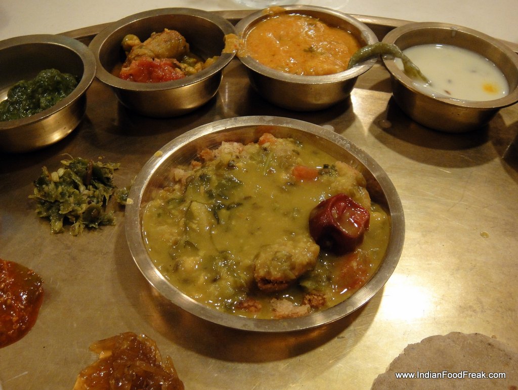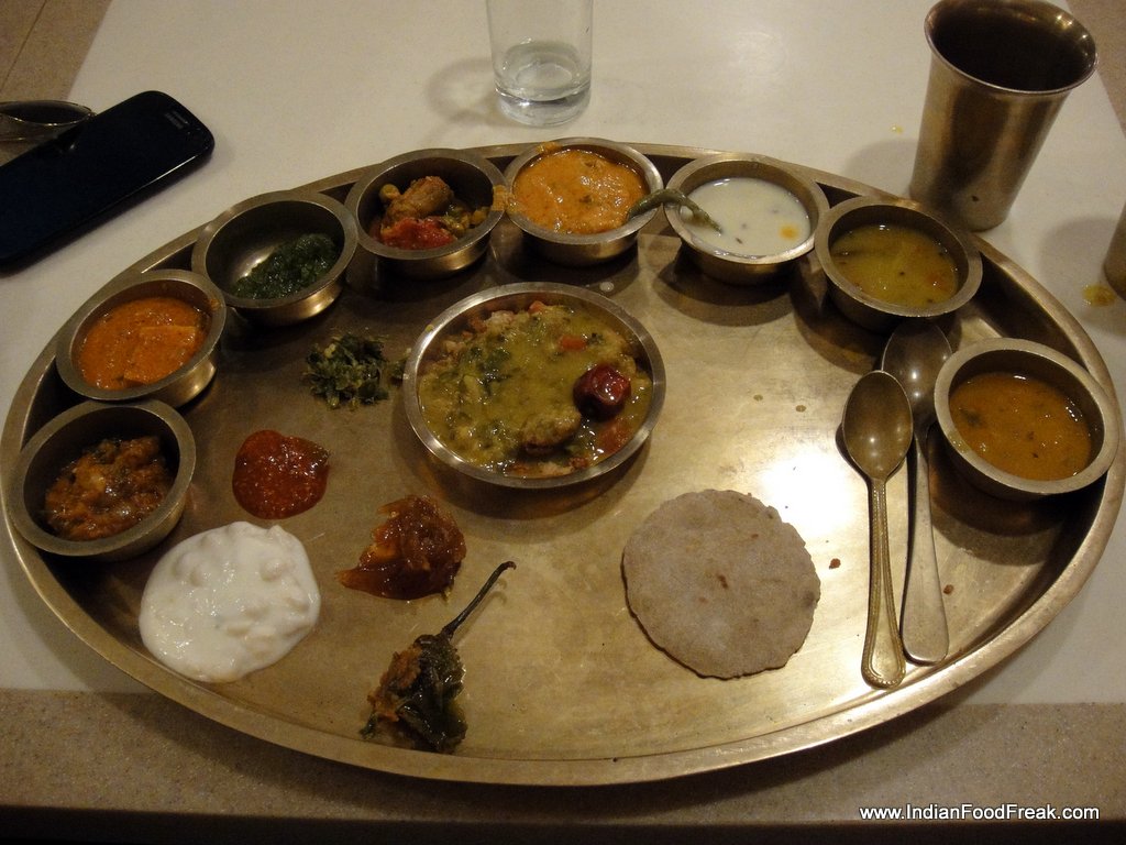 A simple fresh lime welcome drink done with, I moved to sample the Farsan. I have to say, I was pleasantly surprised at the onset. The food was fresh, tasty and served with care – not dumped in my plate like most Thali restaurants would do. The sandwich tikki was delicious, so was the Dahi Wada. Next came the daal baati churma, which was prepared on my plate by two staff members, and definitely the best I have ever had. The texture was crunchy, taste balanced and the dish overall mildly spicy to suit my taste buds. I wanted to ask for seconds, but the task ahead was daunting to say the least – and I needed my organs to save themselves for the onslaught.