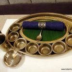 The tables were laid out well, with ample room and some amount of privacy. Conversations were flowing easily across other tables without me overhearing any saucy gossip. At the table, a large banana leaf adorned brass plate, numerous saucers and a neatly rolled napkin invited me to begin the feast. The ‘captain’ of my table welcomed me to Rasovara, and with a signal to his troops, initiated the proceedings. A digital tablet was presented showcasing the menu of the day, which is a cost effective and environmentally friendly practice, as I am told, Rasovara serves about 70 menu sets across the year, ensuring that one does not get to taste the same menu twice.