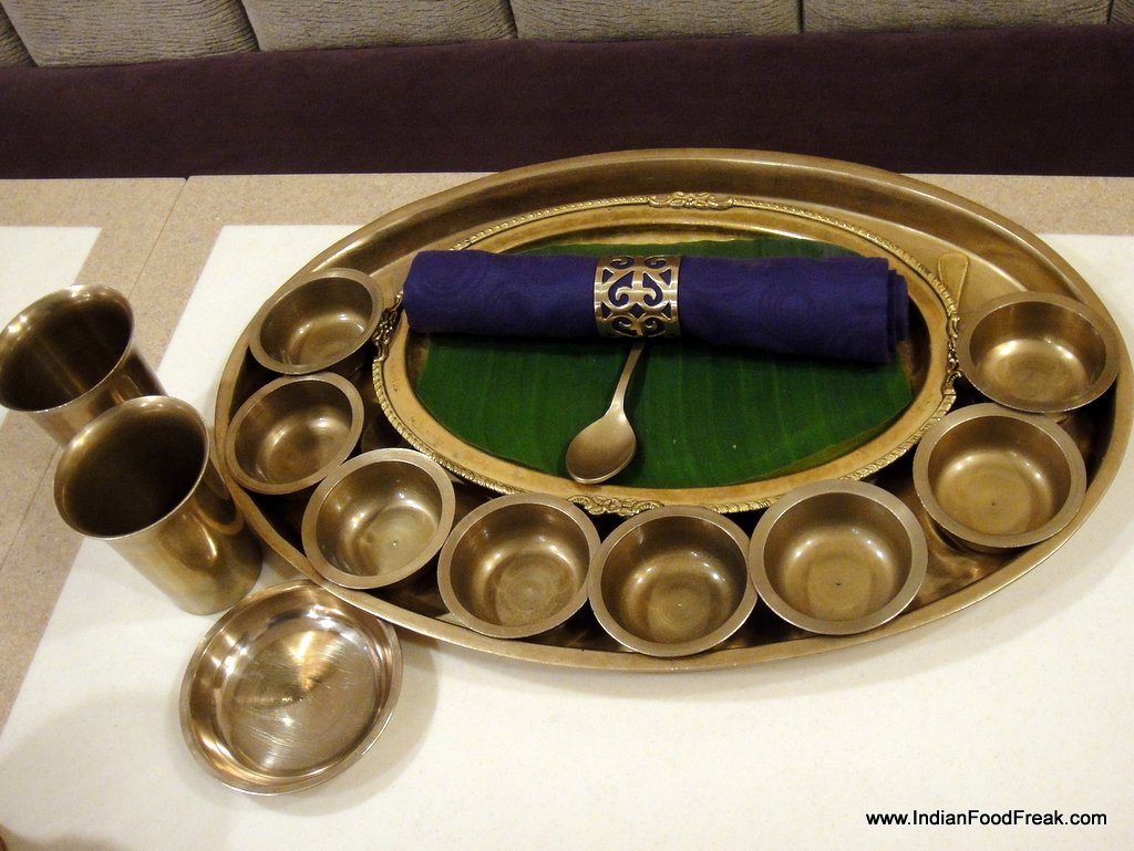 The tables were laid out well, with ample room and some amount of privacy. Conversations were flowing easily across other tables without me overhearing any saucy gossip. At the table, a large banana leaf adorned brass plate, numerous saucers and a neatly rolled napkin invited me to begin the feast. The ‘captain’ of my table welcomed me to Rasovara, and with a signal to his troops, initiated the proceedings. A digital tablet was presented showcasing the menu of the day, which is a cost effective and environmentally friendly practice, as I am told, Rasovara serves about 70 menu sets across the year, ensuring that one does not get to taste the same menu twice.