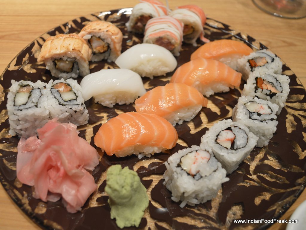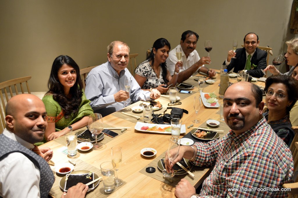 The next course of our lunch was at Edo, the speciality Japanese restaurant at ITC Gardenia. The magic of the evening influenced my glass of red wine too, and without any warning, it jumped out of my glass straight for Magandeep’s whiter than white shirt. But the fun group that we were, we made it another excuse to have some laughter, and believe me, I was terribly relieved.