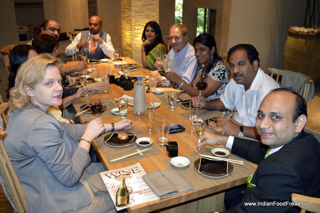 The next course of our lunch was at Edo, the speciality Japanese restaurant at ITC Gardenia. The magic of the evening influenced my glass of red wine too, and without any warning, it jumped out of my glass straight for Magandeep’s whiter than white shirt. But the fun group that we were, we made it another excuse to have some laughter, and believe me, I was terribly relieved.