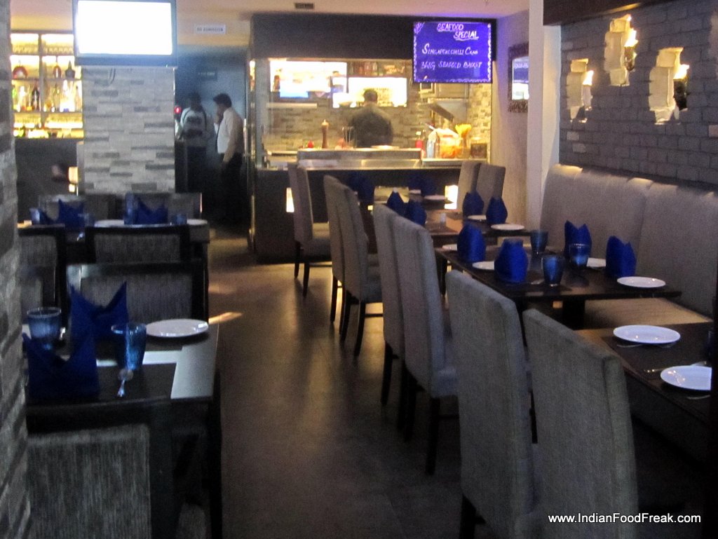 InteriorsNo wonder if you look at the pedigree. Blue Water Grille is an initiative of M.M Fisheries which is the biggest Sea food and poultry supplier to major Hotels, banquets and Restaurants in the country since 1964. I meet their Executive Chef S.M. Malhotra, a veteran chef with 35 years of experience in India’s best known hotel kitchens. He promises a most enjoyable lunch and I believe him.