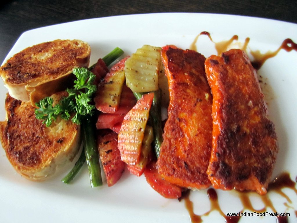 Grilled Fish Tamarind SauceWe start with grilled fish in spicy tamarind sauce (Rs 410) which the chef says he has created to appeal to the local palate which craves for ‘chatpata’ food. And hot and sour it is, though in being so, it overshadows the delicate taste of the fresh fish. The next dish, piri piri fish (Rs 410) has red looking basa with the now popular South African rub. It is beautifully cooked and optimally spiced. Happiness!