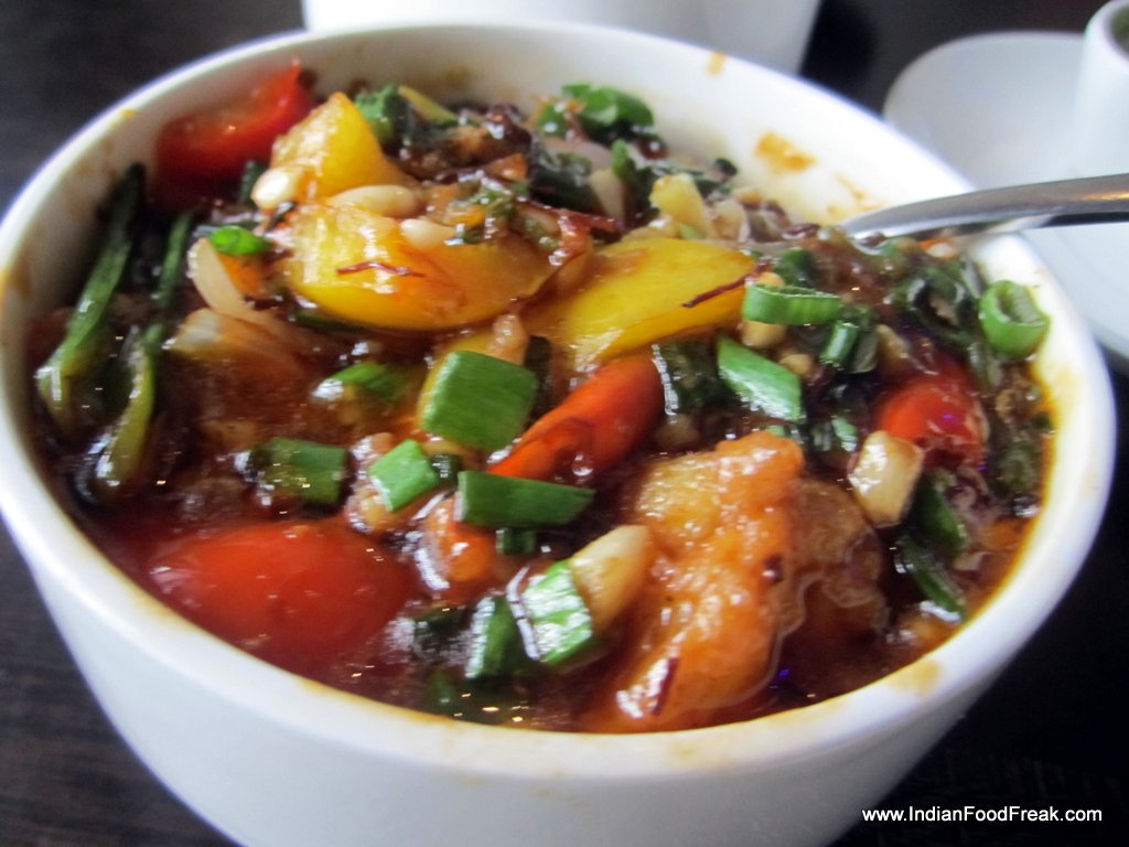 Singapore chilly crabSingapore chilly crab (Rs 395) arrives majestically on the table. It is nearly authentic, and tastes wow. I am immediately transported to the shacks of Clarke Quay. The black bean fish (Rs 410) tastes good, but grilled prawns in lemon butter disappoint. The prawns are over salted, and overcooked, and the sauce is somewhat inappropriate for the dish. Prawns in XO sauce (Rs 525) is the highlight of the evening. This dish is superb down to the last bite. Thai chicken curry (Rs 335) is well crafted, but as is the case with most of the Thai curries made in Delhi, its consistency is too thick and gluggy for me.