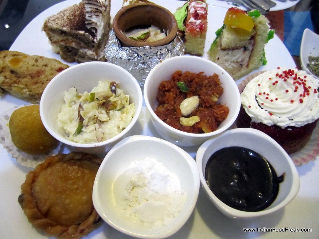 Desserts are what this café takes rather seriously. The dessert tasting platter that is served to me is full of goodies like apple bread, casatta siciliana, (a soft sponge cake layered with ricotta cheese and marzipan), tiramisu cake, carrot cake, christmas special sponge cake, rabri (all at Rs.145 per portion) to red velvet cupcake (Rs.65), Kashmiri phirni (Rs.95) and gajar halwa (Rs 95) there is something for every sweet lover. In this weather it is the piping hot gajar halwa that I indulge most in.