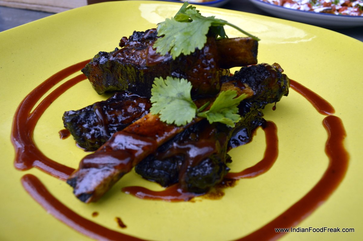 Spiked NachosThe menu at Monkey Bar is something that impresses the most. A mix of Goan Sorpotel, Coorgi Pandi curry, Mumbai’s Dabeli, Parsi berry pulao, Ethipian Doro wat and many more regional delights are never seen before in a pub, and it definitely fits in the gastro-pub category. Most of the food is non-fussy, quickly delivered and improvised to please the majority’s taste buds. Spiked Nachos (290) is a big heap of Nachos with guacamole and sour cream topped with bbq chicken, onion, tomato and spring onions; a sinful delight. Am still to have better slow braised bbq pork ribs which delightfully manage the sweet-sour balance and at Rs230 a plate, it is a steal and surely a must-have on every visit. Chilly bheja fry (240) is another of the outstanding starters to order at the Monkey bar.