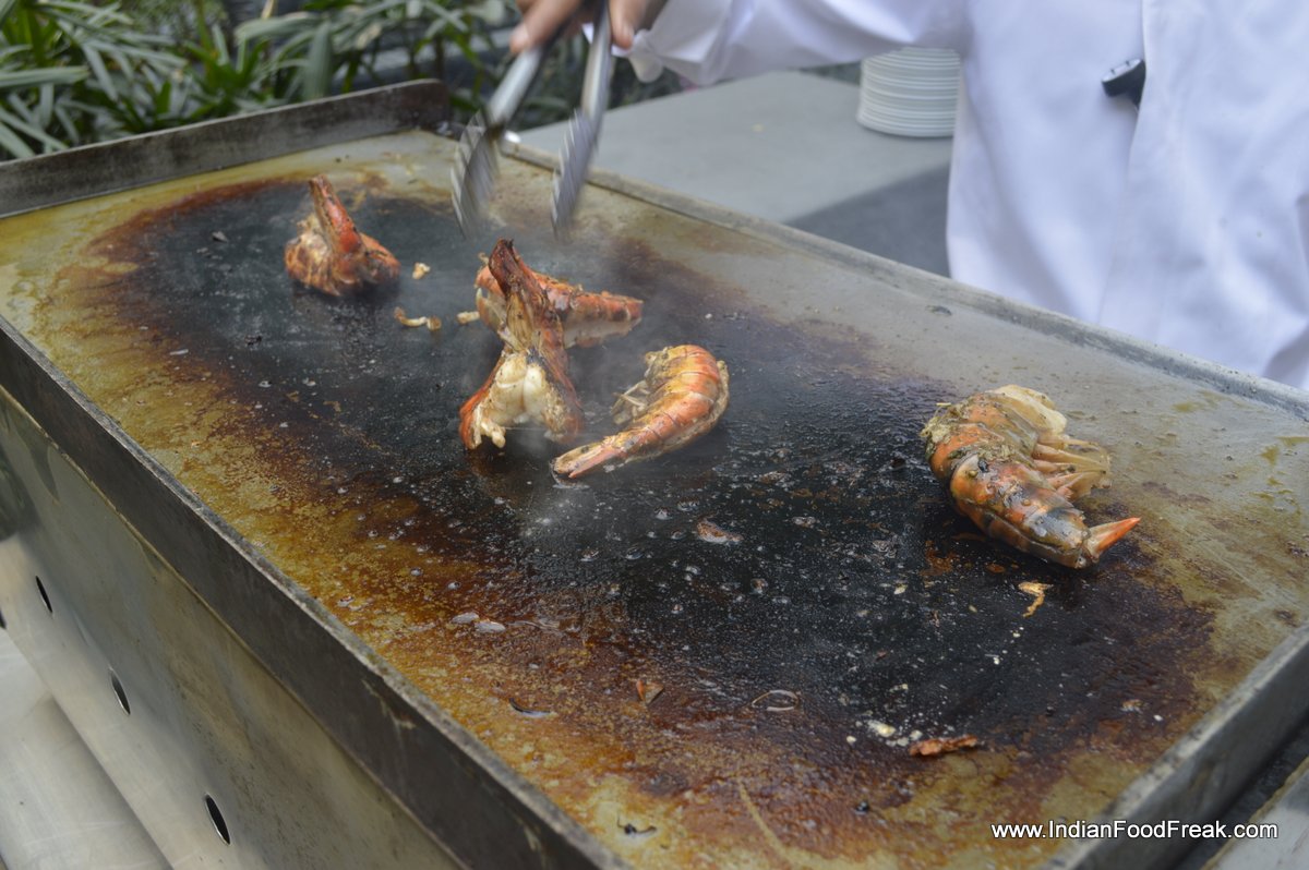The layout is impressive with soups, salads, cold cuts, home-made cheese, dim sum, sea food including fresh oysters, live grills including jumbo prawns, lamb, fish and chicken, a chaat counter and of course lavish spread of Cantonese, Tuscan and Indian delicacies apart from desserts, I took a good quarter of an hour just eating the feast from the eyes and mentally preparing on what to eat and creating excess capacity.