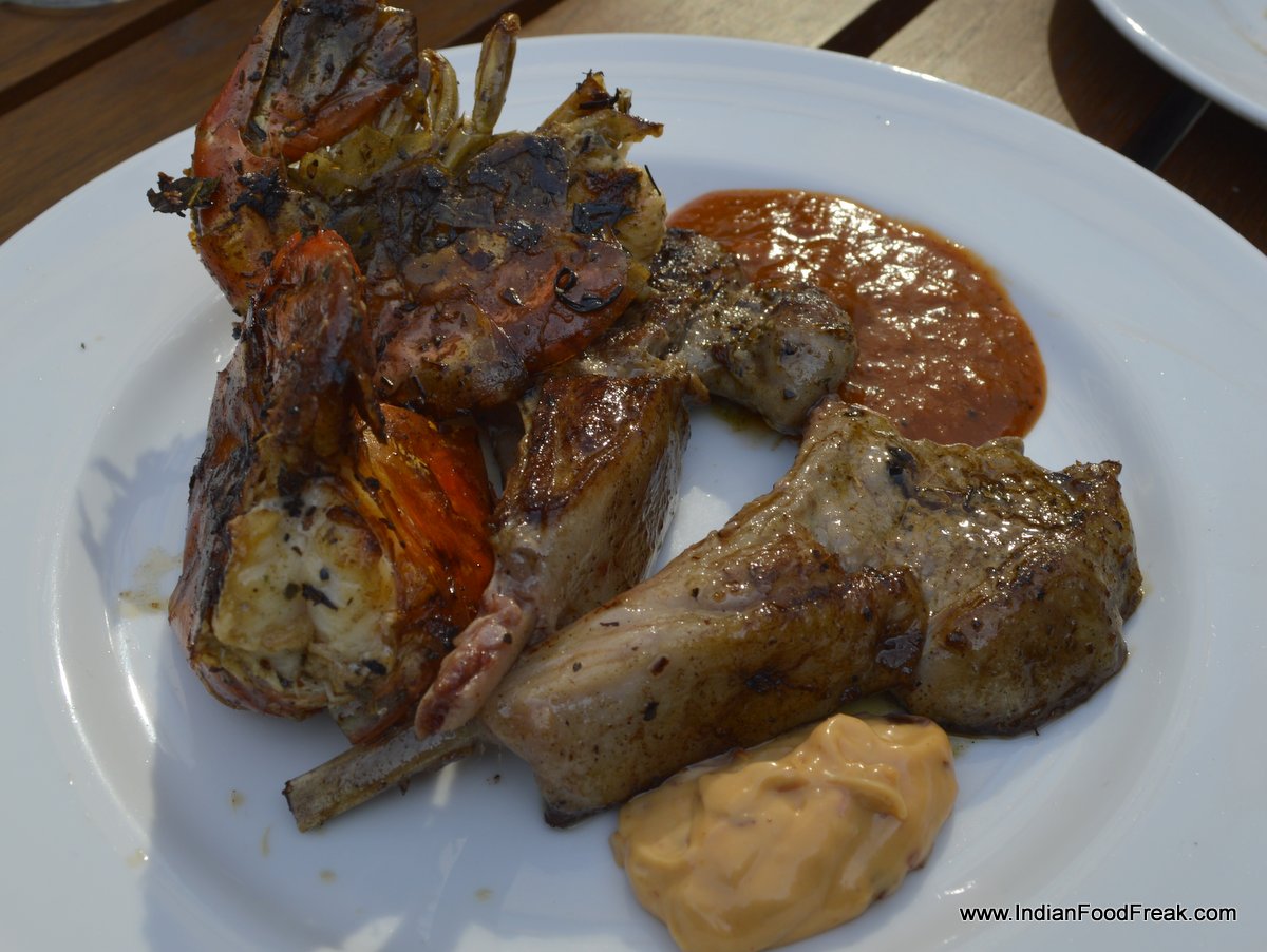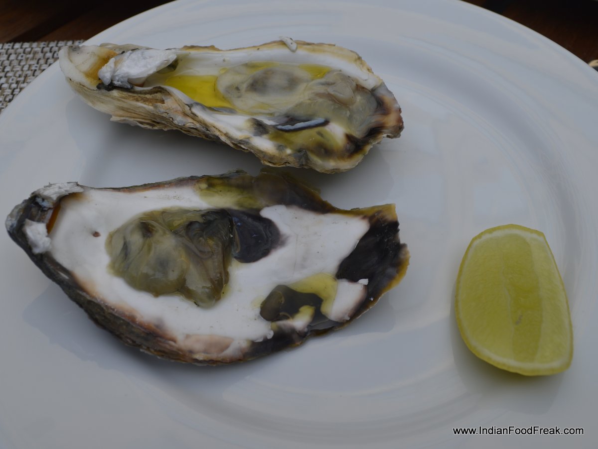 he dimsum are good though I would have liked the dips to be made available on the table. The pizzas with fresh tomato paste and excellent cold cuts are surely not to be missed. The oysters are served just a way a purist would like it; raw with little squeeze of fresh lemon and olive oil.