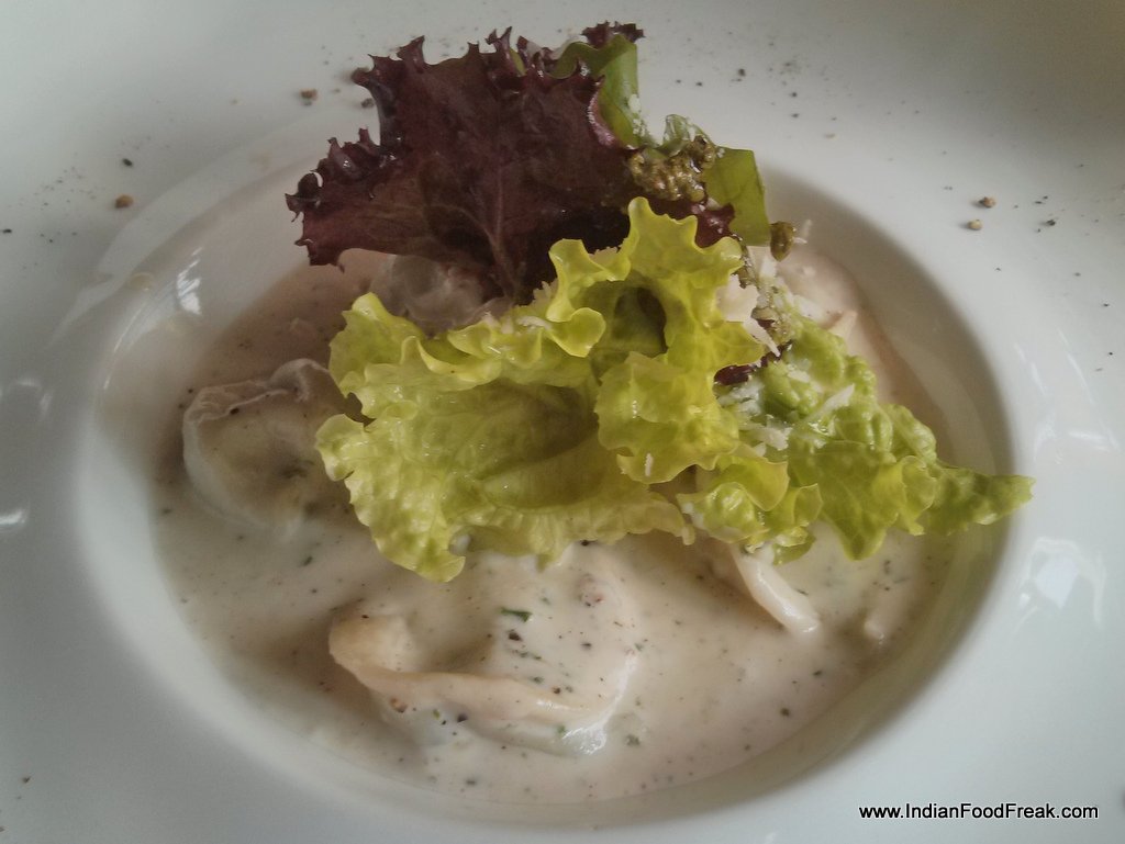 Fio makes its pasta fresh for every order. I choose an unusual pasta, cappelletti in carbonara sauce (Rs.645). /- Cappelleti is a pasta in the form of little peaked hats, and goes well with the creamy carbonara sauce.