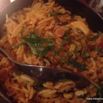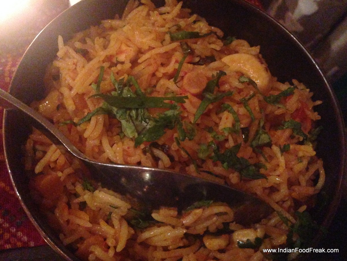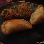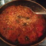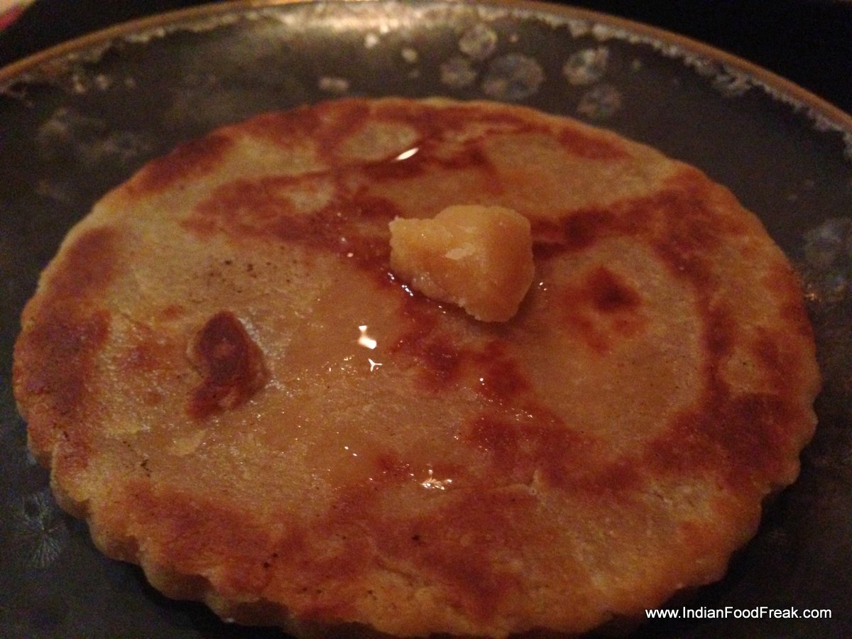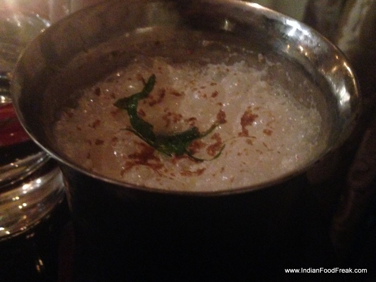 Born and bred in Gujarat on a regular diet of Gujarati food, I was looking forward to this. We started our dinner with Shikanjia concoction of lime, mint, kalanamak and Jeera Chhaas. While the Shikanji was refreshing the Chhaas was light foamy and just right to get our taste buds doing a wee bit of Garba! Then followed the appetisers of Methi Bhajia and Vatanana Ghugra. The methi bhajias were light and fluffy with just the right amount of fenugreek. The Ghugra however took the stage with its flaky exterior and taste-bursting filling! With the duet played by these appetisers along-with the array of chutneys such as Imli-jaggery Chutney, Mint Chutney and the Garlic-Red Chillies Chutney we were set to kick off the evening with a promise. We followed with a main course of Sev tamatar Nu Shaak, Saragrami nu besan accompanied with Bhakari and Thepala. The vegetables and breads got us going second and third rounds like doing Dandiyas in pairs!