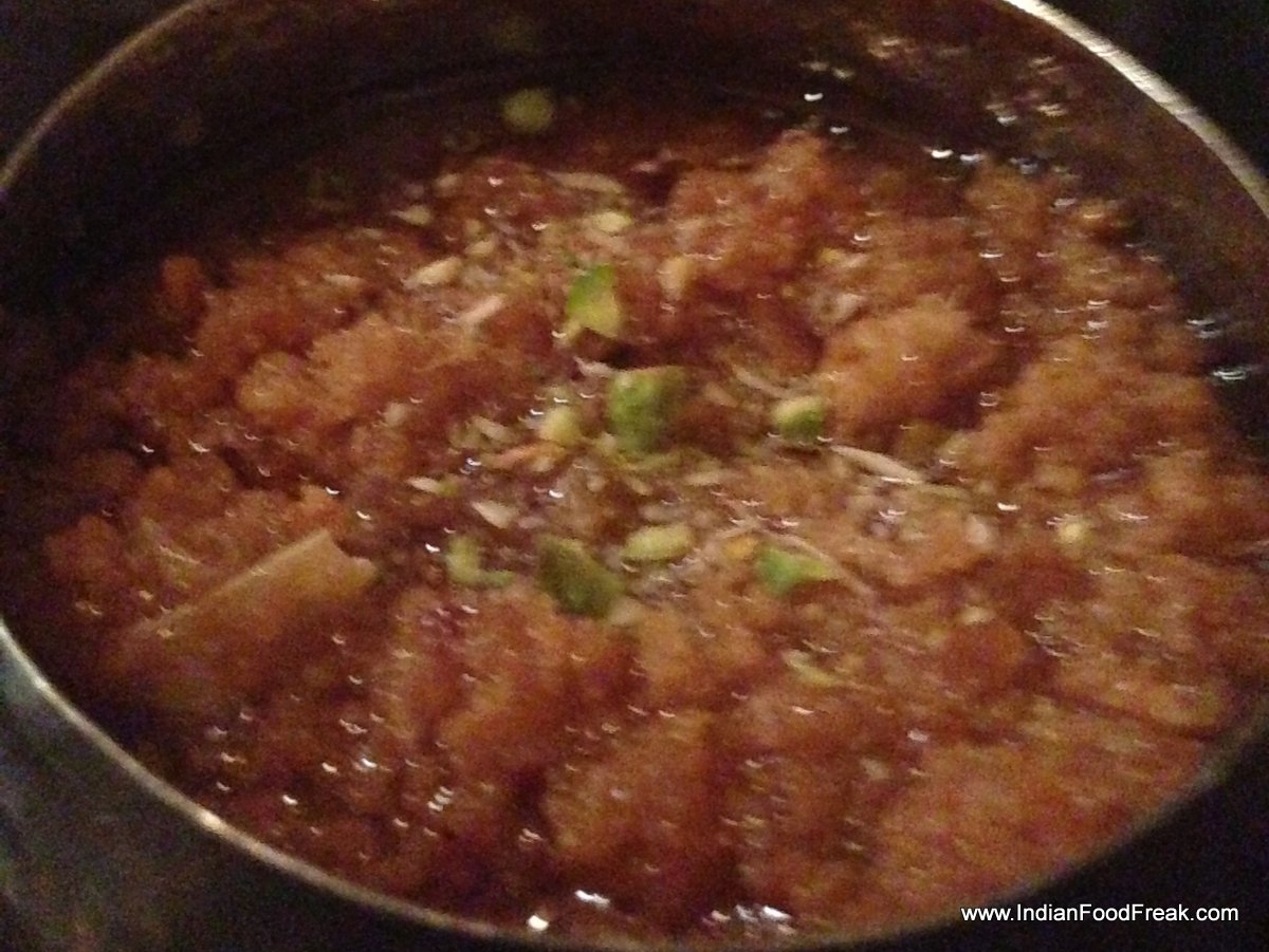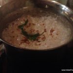 The sev tamatar nu shaak was full of flavour with the sev offsetting the sweetness. The saragrami nu besan was a first for me but it’s the one I enjoyed the most. It was drumsticks cooked in besan lightly tempered with mustard seeds. It is eaten with ghee and jaggery infused bhakari and then with the thepalas. By then I was readily waiting for the next round. The main course further followed with Trevedi Daal, Dabka Nu Kadi and Ghatte nu Bhaat. The trevedi dal made with mung, udad and chana daal however was a tad disappointing. The gatte nu bhaat had a different flavour slightly overpowering than what one is used to. It had the essence of the rose in it. But the dabka nu kadi was a show stopper. The Gujju in me (and I say it with pride and fondness) started rocking again. Hence I would call it my Disco Dandiya round. Loud Music, jostling bodies, crazy rhythm and end of it you still rock with it! The dessert was Badam no sheera – induced in the goodness of ghee, dry fruits and mawa… it was like the Raaslila I had seen on last days of Navratri; rich, emotion filled, unabashed!