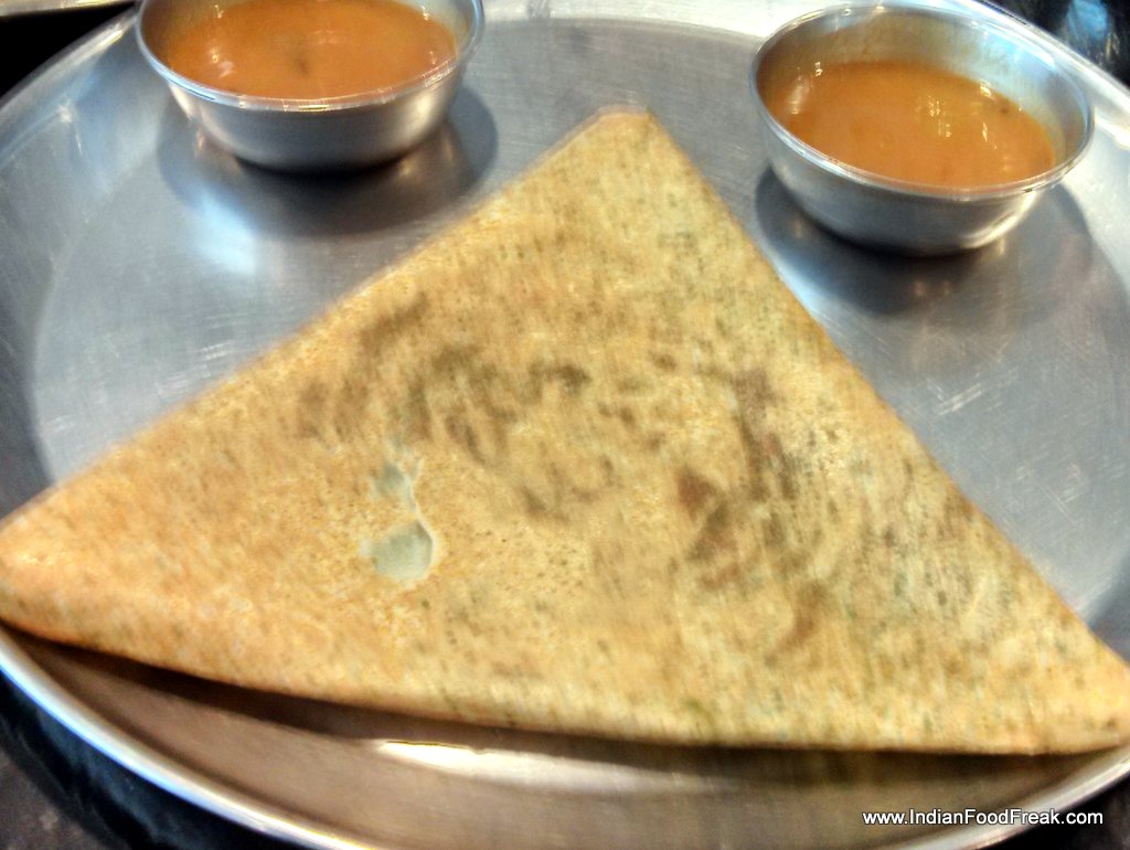 It is time for the dosas next. I start with the Andhra classic MLA pesarattu (Rs 140) which is a green mung dal dosa filled with upma. The dish is authentic and most enjoyable. Veg kothu parota (Rs 200) is a dish popular in Sri Lanka. Here a Malabar parota is cut into bits and then cooked with onions, curry leaves and chillies, making for a wonderful dish. Garlic dosa (Rs 155) is a surprise, and the extremely hot mirapakaya (green chilly) dosa (Rs 130). I can see the face of my friend accompanying me turn to red and then maroon with the chillies. Fortunately I am more adept at handling chillies and enjoy the explosive interiors of this dosa. Kanchipuram dosa (Rs 105) is interesting, however the adai (Rs 110) is missing the rough texture that makes this dish so endearing.