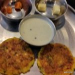 is lacking the mandatory boondi on top. Urulu roast (Rs 250) or aloo masala from Tamil Nadu is spicy, crisp and enjoyable. Keerai Kuttu (Rs 280) or dal palak is green and healthy, and Chettinaad paneer (Rs 300) captures the taste of an authentic dish from Chettinaad. Kai kuruma (Rs 280) or veg korma from Karnataka is optimally spiced, and veg stew (Rs 300) from Kerala is snowhite in appearance and benign in taste. Tomato Pappu (Rs 260) or spicy tomato dal from Andhra is exciting. The breads served, appam (Rs 45), idiappam (Rs 70) and Malabar parota (Rs 40) are all professionally rendered.