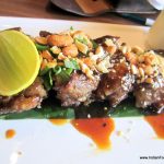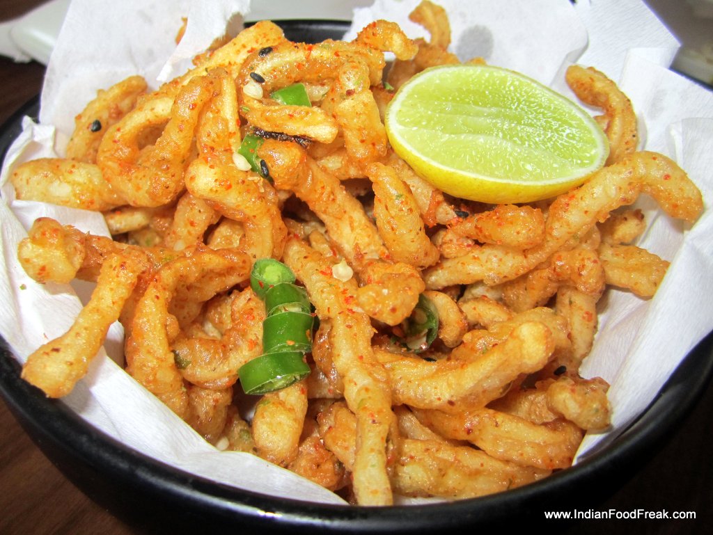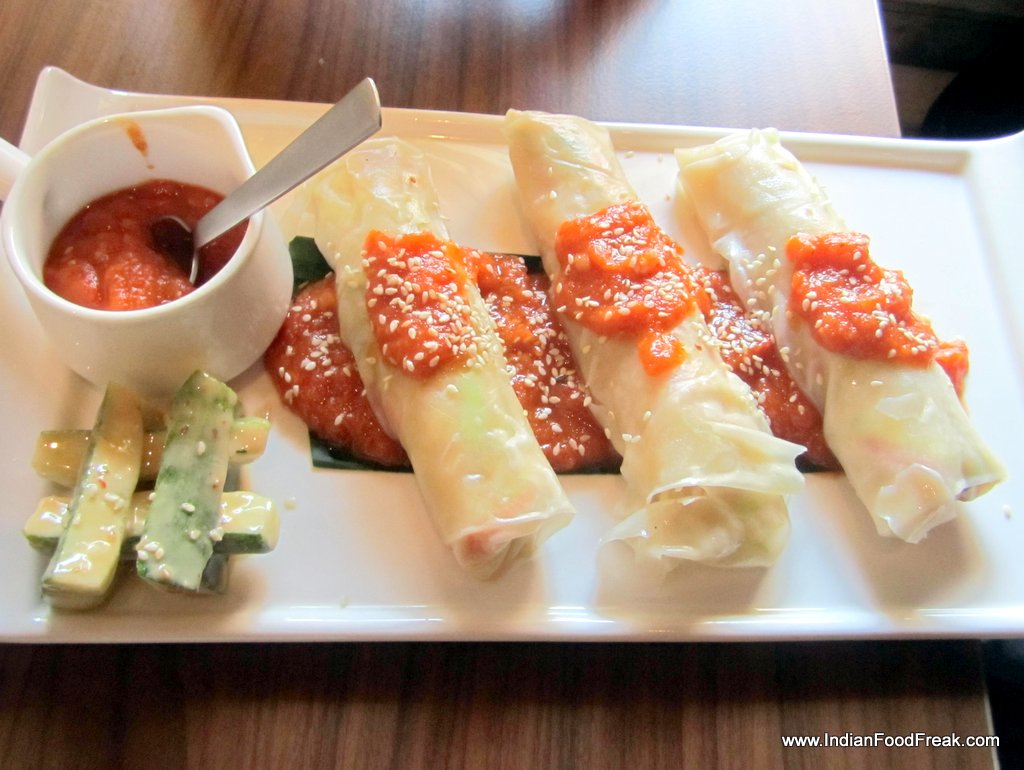 enjoyable as one would find on the streets of Bangkok. Calamari fritters (Rs 375) are perfectly cooked. Unlike many other places, here they are not over fried, and retain their soft crunch. They are rightly seasoned, with an exciting chilly mayo accompanying it as a dip. Makati city discovery (Rs 265), a dish from their winter menu, has cooked vegetables wrapped in a rice roll with pineapple salsa. It does not really work well as a dish, since it lacks a distinct flavour and has an unimpressive texture.