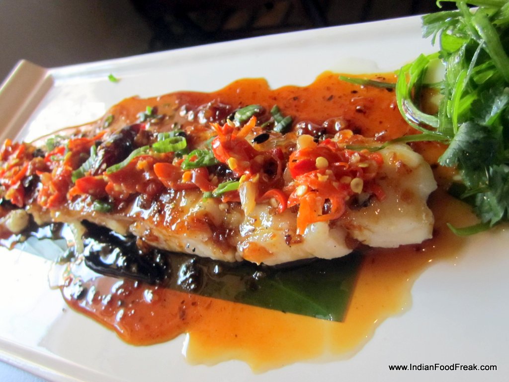 I love the thoughtfulness in having the wet tissues being served along with it because the best way of eating ribs is with one’s fingers. Tangtze river grilled fish with black beans and pickled chillies (Rs 445) is a good dish but somewhat imbalanced. The sauce is a bit too sweet and the taste of black beans gets lost.