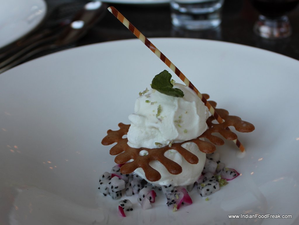 Giving it a pass, we eagerly waited for our dessert which was from our final destination, Huda City Centre. Therefore, as we were told, the team from Latitude wanted to serve their speciality so we got to experience ‘Vivanta Lemon Grass ice-cream with Dragon Fruit’. As we took the first bite we liked the vanilla flavour but lemongrass flavour was conspicuous by its absence.