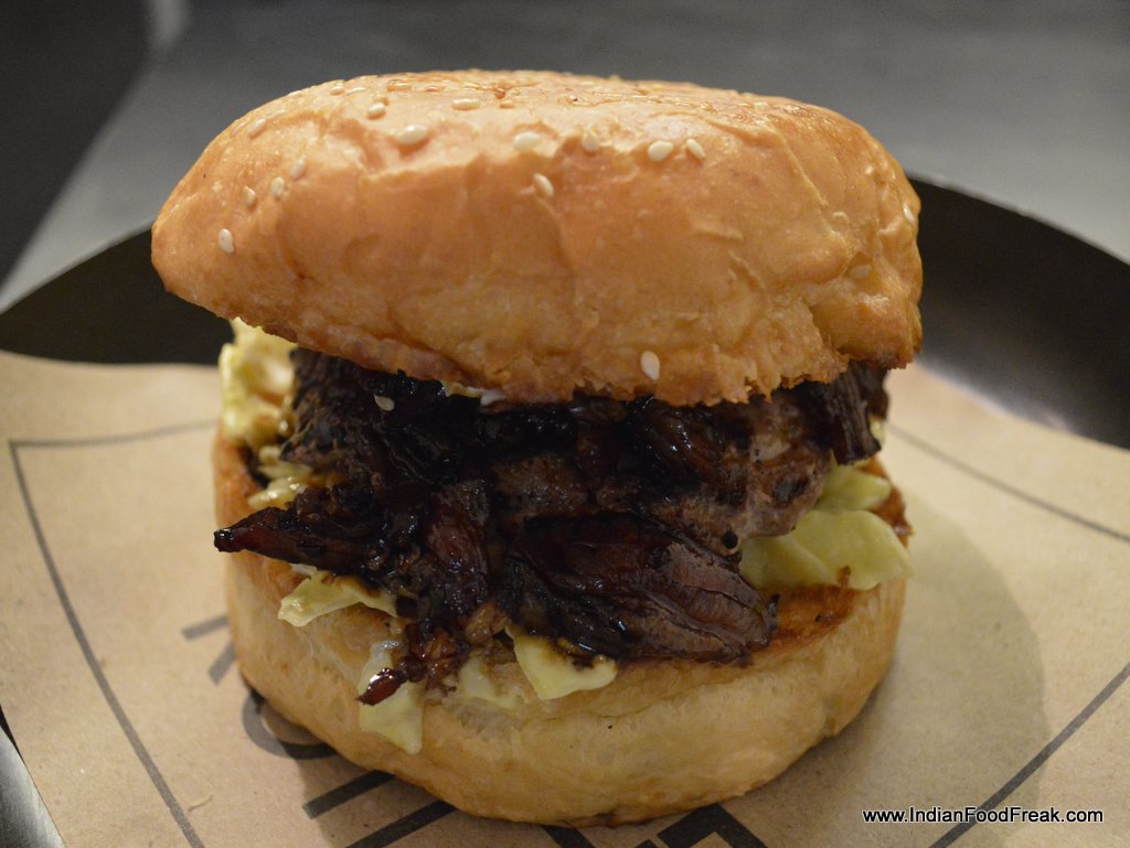 I start by ordering Lamb Chilly Fries (145) and Char Grilled Pork Teriyaki burger (265). The chilly has good bites, is sufficient for crisp and cheesy fries and certainly gives oomph and lamby flavors to humble fries. Burger is even better and a delight for any pork lover. Thankfully it has less of veggies, none of tomato or onion and retains moisture without getting the bun soggy. The crisp bacon with Teriyaki, mustard and bbq sauce takes this experience to a different level. My only wish is the patty should be a tad bigger to fill the bun completely.