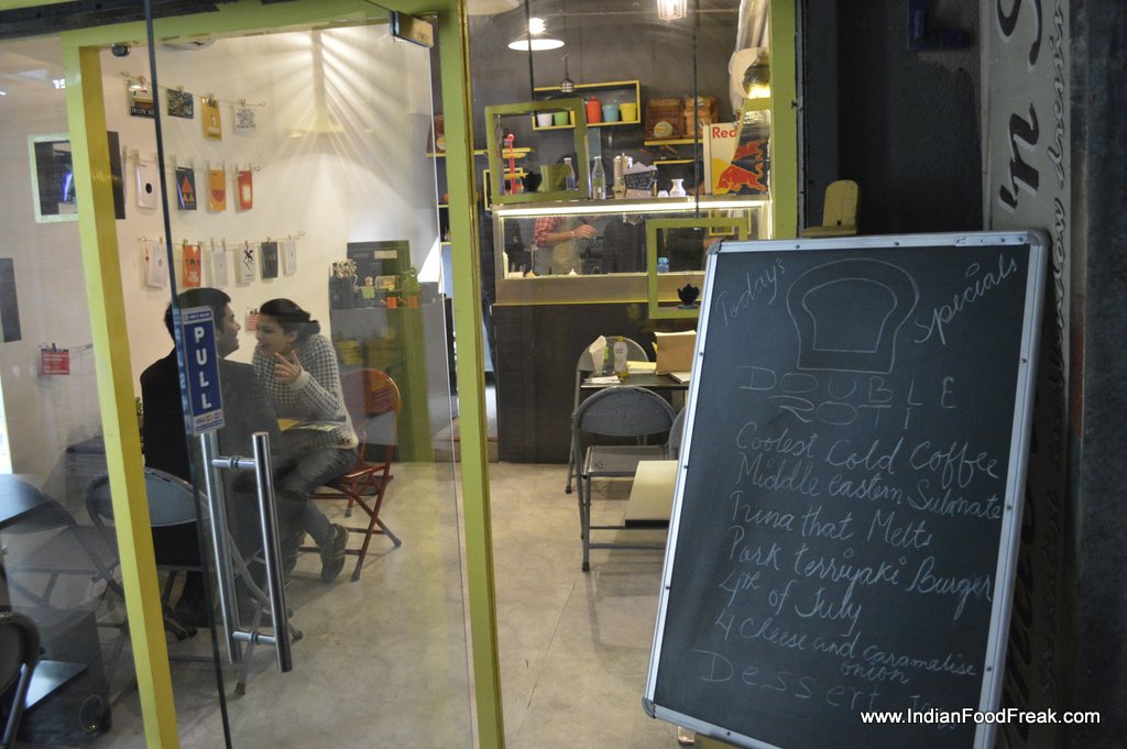 Most moments that make life so beautiful are unexpected. No advance planning can recreate those experiences. My recent visit to an unknown and a barely-there cafe in the hidden back-lane of galleria market is one such discovery. Double Roti, is what I called my sandwich bread as a kid, and I went inside with an impression that this small 14-seater would only be serving different kinds of sandwiches. How wrong was I!