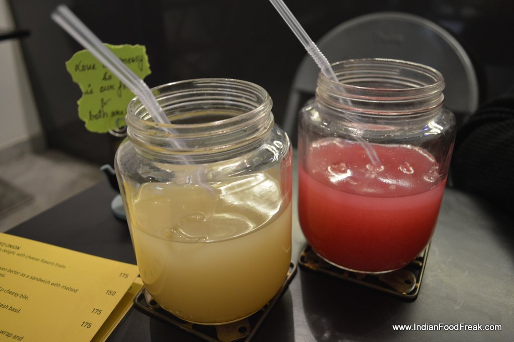Double Roti sandwich bar and cafe serves much more. It has Pita breads, Tortilla, Burgers, Hot Dogs and as expected Sandwiches too both in white bread and brown bread option. The interiors are simple but funky. Interesting surd one-liner (Owner is a surd), yellow color in the background, plating in different types of girdle, tawa and jar gives this place a character.