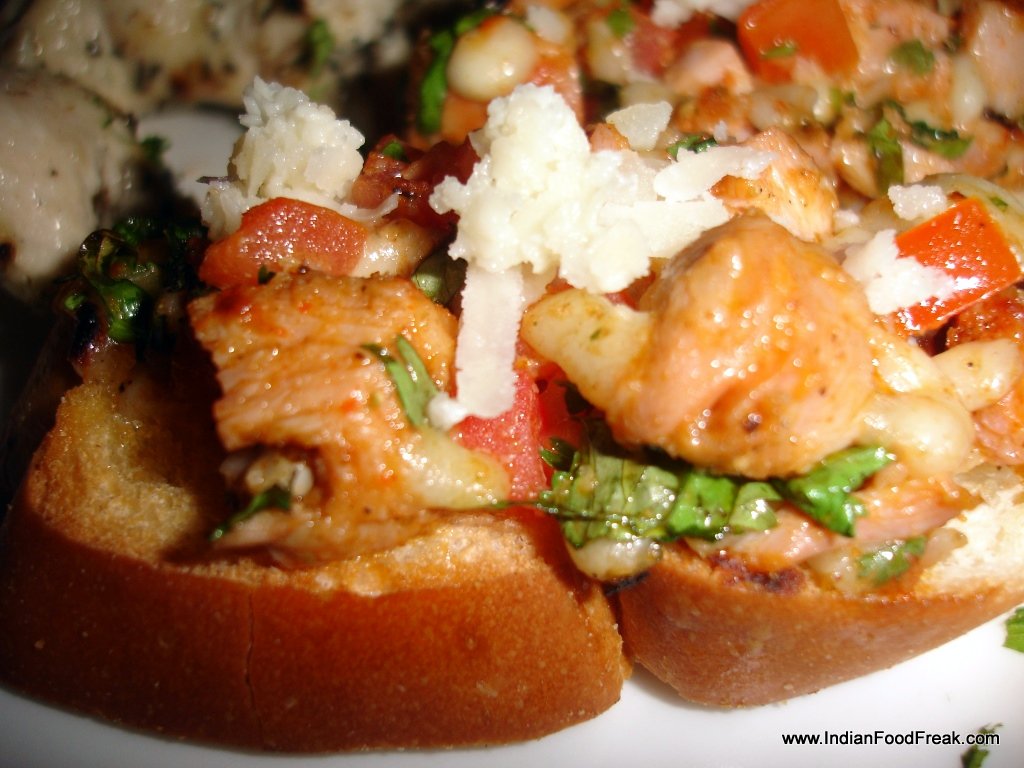 Moving on we tried the Corn Cheese Seekh Kebabs (Rs.200) and Stuffed Jalapeno Poppers (Rs.200). The kebabs were very silky and melt in the mouth – I have seldom eaten a vegetarian kebab with such delectable flavours, credits to the chef. The Jalapeno poppers unlike the popular bite sized versions, was a complete jalapeno with a crunchy coating and centre filled with cream cheese, making it an interesting bite and certainly a good snack to accompany the drinks. Another drink was soon ordered to tackle the heat caused by the poppers and I chose a Fresh Pomegranate Martini (Rs.450) and on the owner Nikhil’s insistence, their popular Long Island Ice Tea (Rs.500), both the drinks hit the right spot, though my heart went out more to the Long Island Ice tea as the Tequila and the vodka in the drink made for quite a heady cocktail. We tried a sampling portion of the Chicken Wings tossed in Chilli Sauce (Rs.250), Chicken Tikka Bruschetta (Rs.250) and a Rosemary and Thyme Murg Tikka (Rs.350), all the three dishes, though having the same common protein, were amazingly different in their taste and execution. I found the chicken wings a bit underdone, but the sauce coating with its intense garlic and chilli flavour, despite being too spicy to my taste, had that pull which makes one want to keep licking the sauce despite its heat. The chicken tikka bruschetta was a regular bruschetta with fresh tomatoes, olive oil, rosemary, cheese and chicken tikka bits topped on crispy bread pieces, the tikka did add to the dish but didn’t elevate it to any special levels. The Rosemary and thyme tikka was undoubtedly the star on the table. The chicken pieces were succulent and juicy and cooked to such perfection that they could be cut with a fork and the fork sliced through the chicken as if it was soft paneer. The tikka base was like the regular malaai tikka, but with the added herbaceousness of rosemary and thyme took the tikka to a wholly different level. We also tried the Garlic Tossed French Fries (Rs.250) which are crispy fries tossed in crispy garlic, interesting take on the regular French fries.